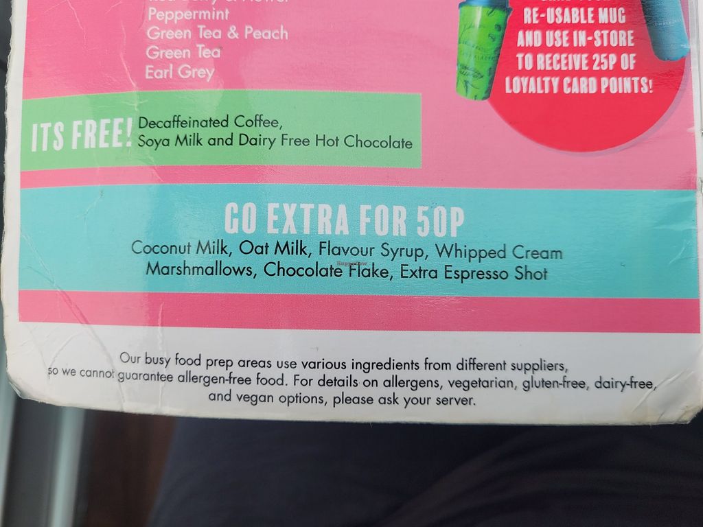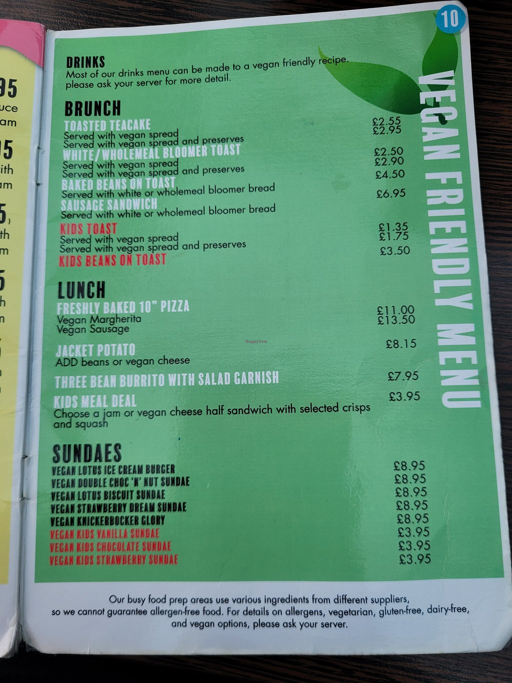 I'm super happy that this old Welsh chain has made the effort to include vegans like me, lots of no nonsense simple vegan options like "cheese" toasties and beans on toast and soy milk for my tea. Also good range of vegan ice cream, sundays etc. with all the trimmings.
