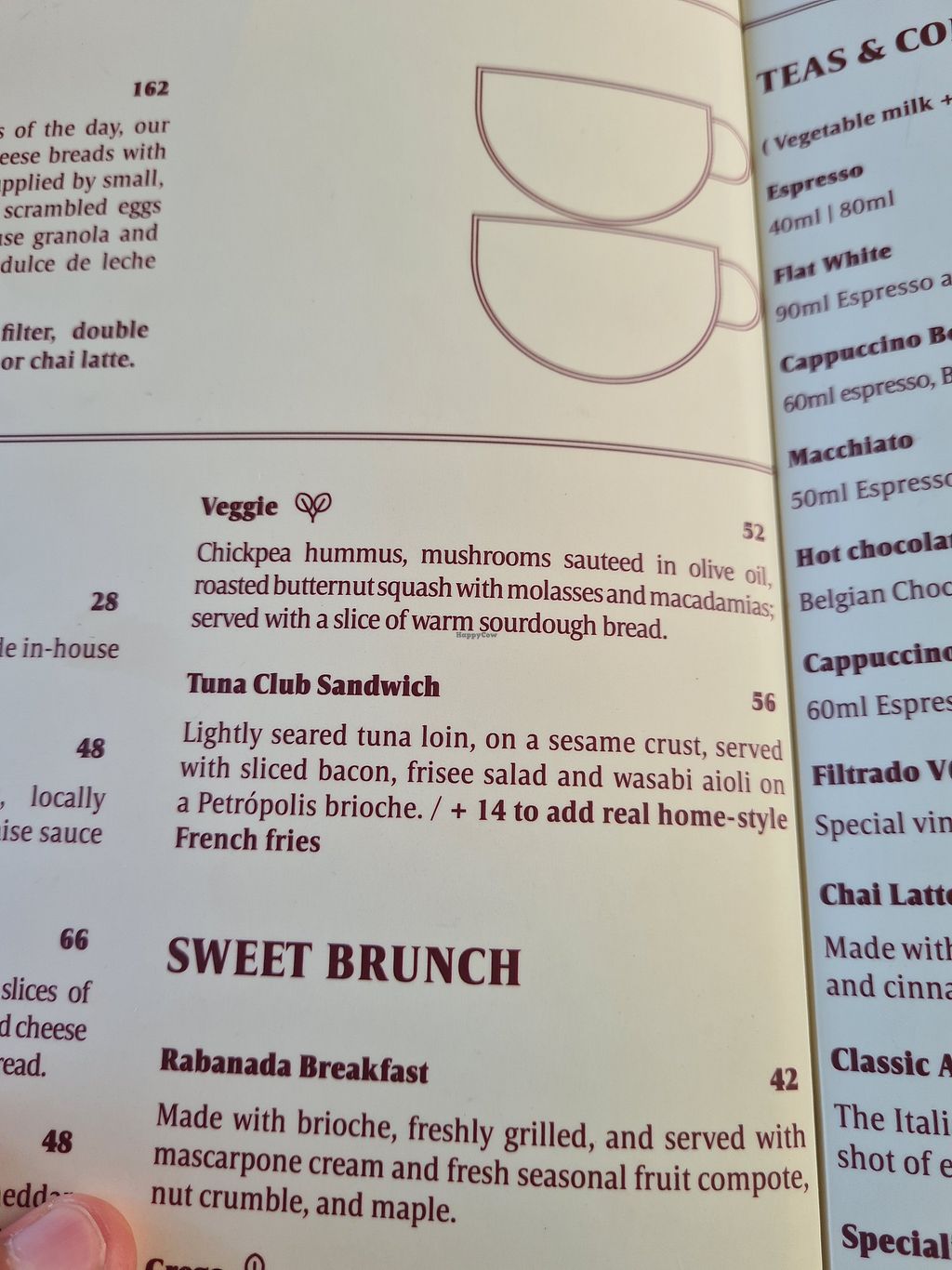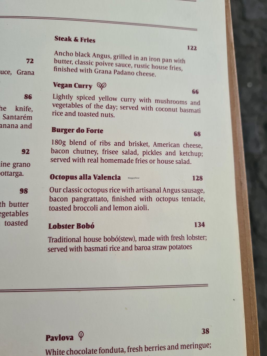 Menu! 1 leaf means vegetarian, 2 leaves mean vegan. And the brown circ…