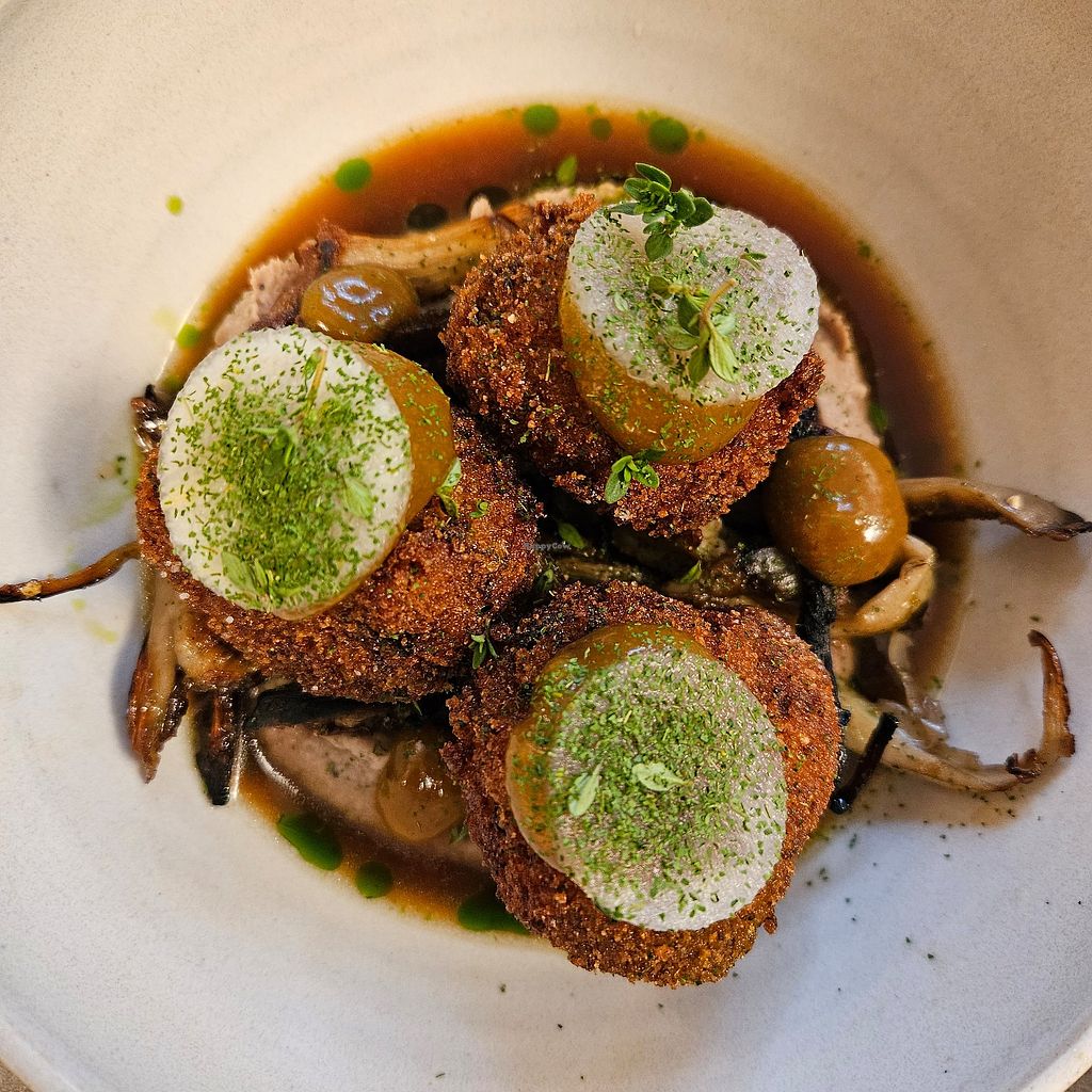 I had the Eggplant on hummus and it was delicious! Very flavorful combinations with different components, with the tabuleh for carbs. Additionally I engorged in the pumpkin Chai pie and it was Hella good 🔥 I love pumpkins, I love Chai, also really enjoyed the Chai latte (which is a rare thing to do well!). Highly recommend especially for diverse groups and meat and non meat eaters😄