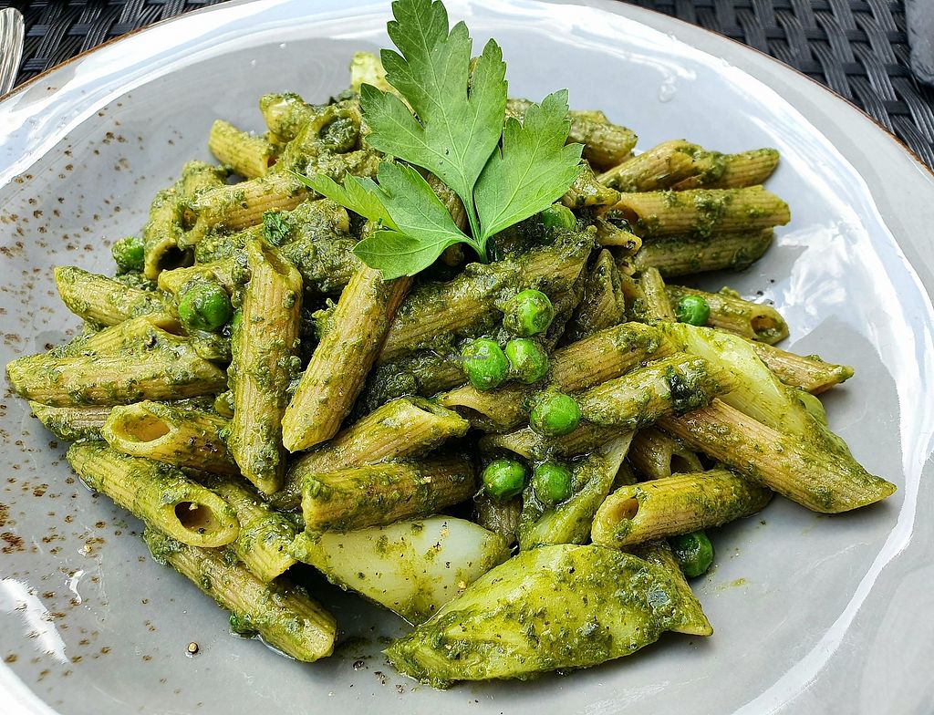 "Die Erbse" veganized - mashed peas, sweet potatoe and olive crumbs on…