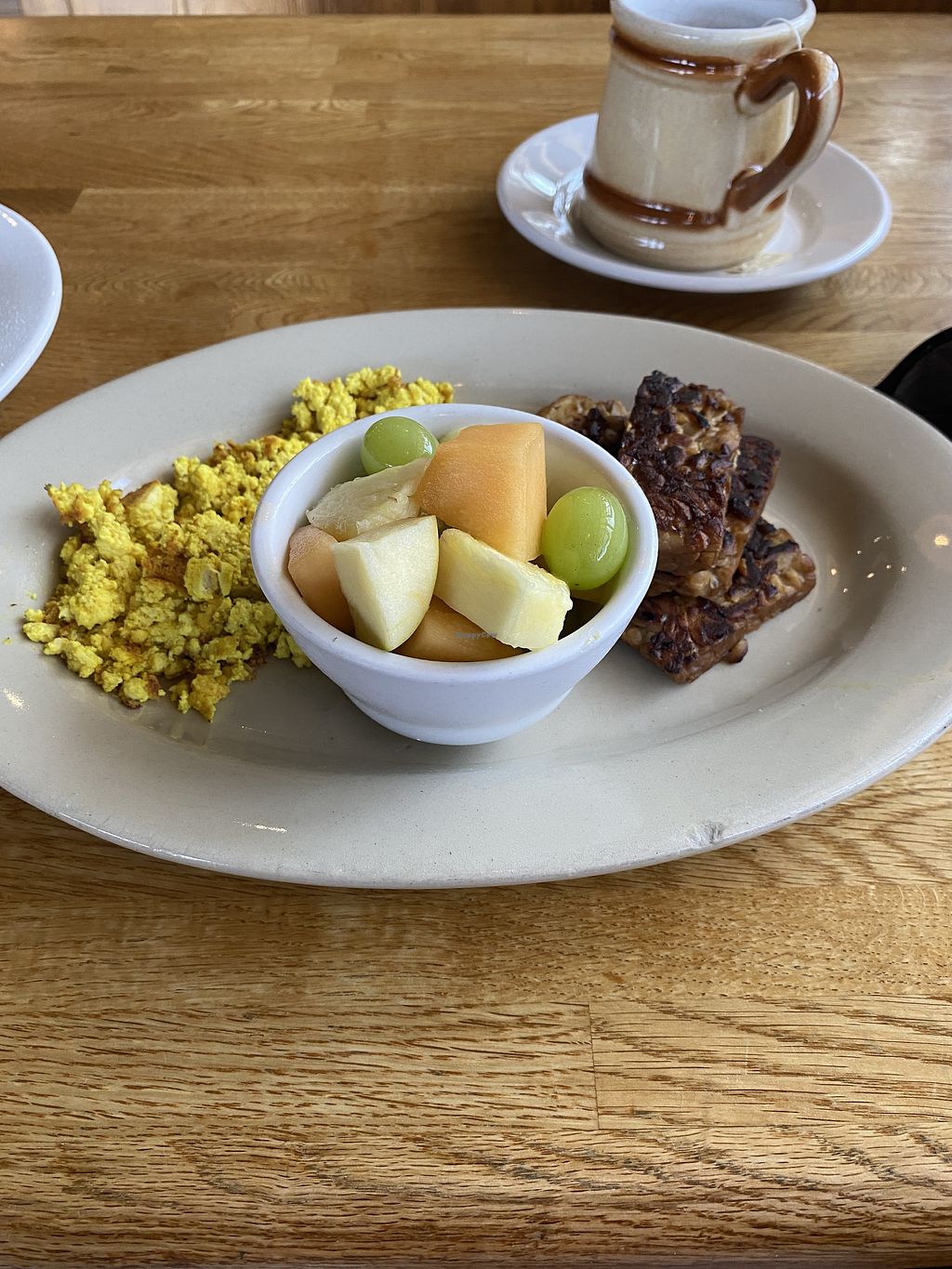Awesome atmosphere. Awesome staff. Awesome food! I let them know I wanted vegan and they hooked me up! Had tofu scramble, tempeh patties, fruit cup and vegan French toast with apple butter!!!
