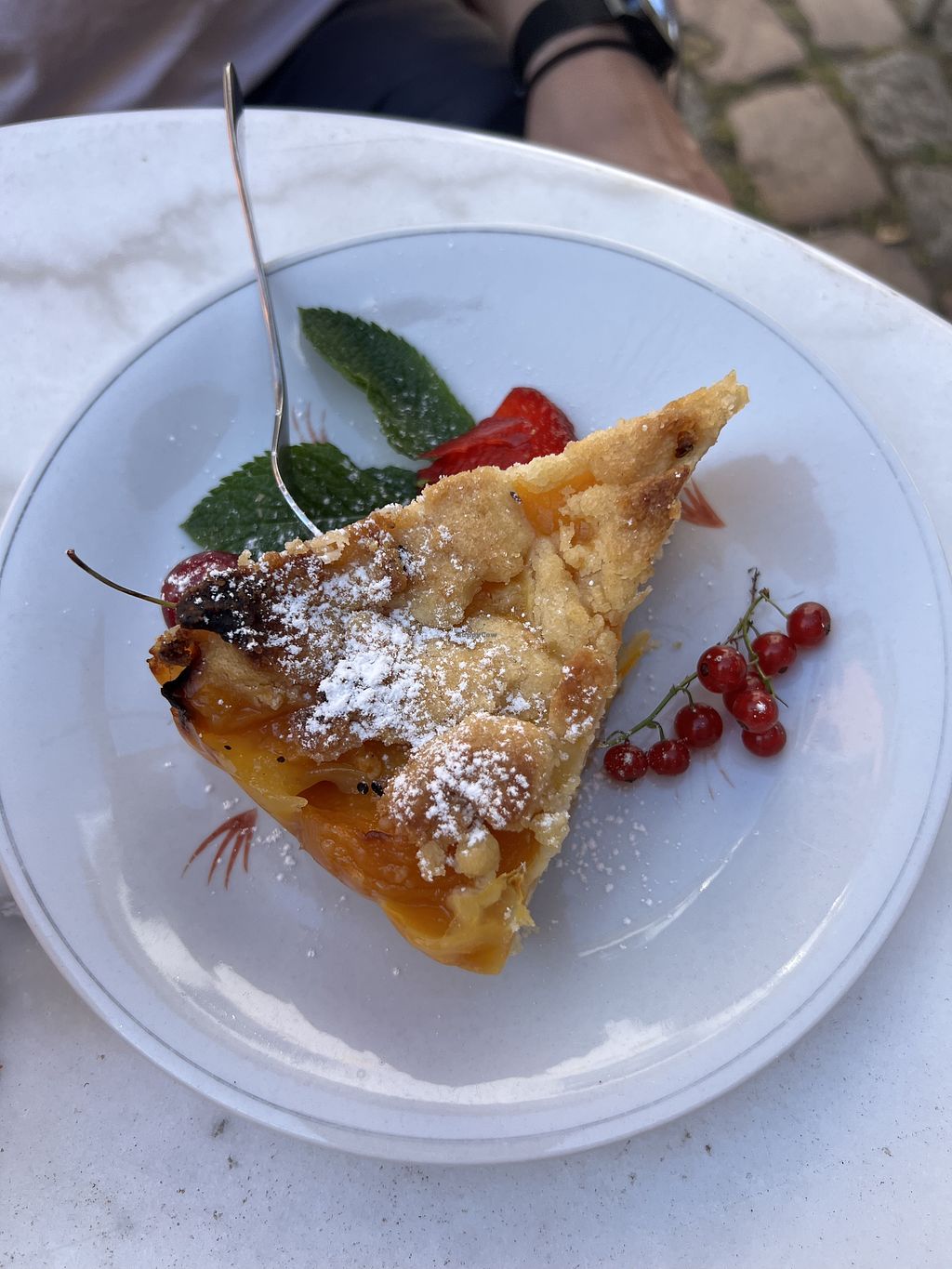 Cinnamon and sugar vegan crepe, with tea.
