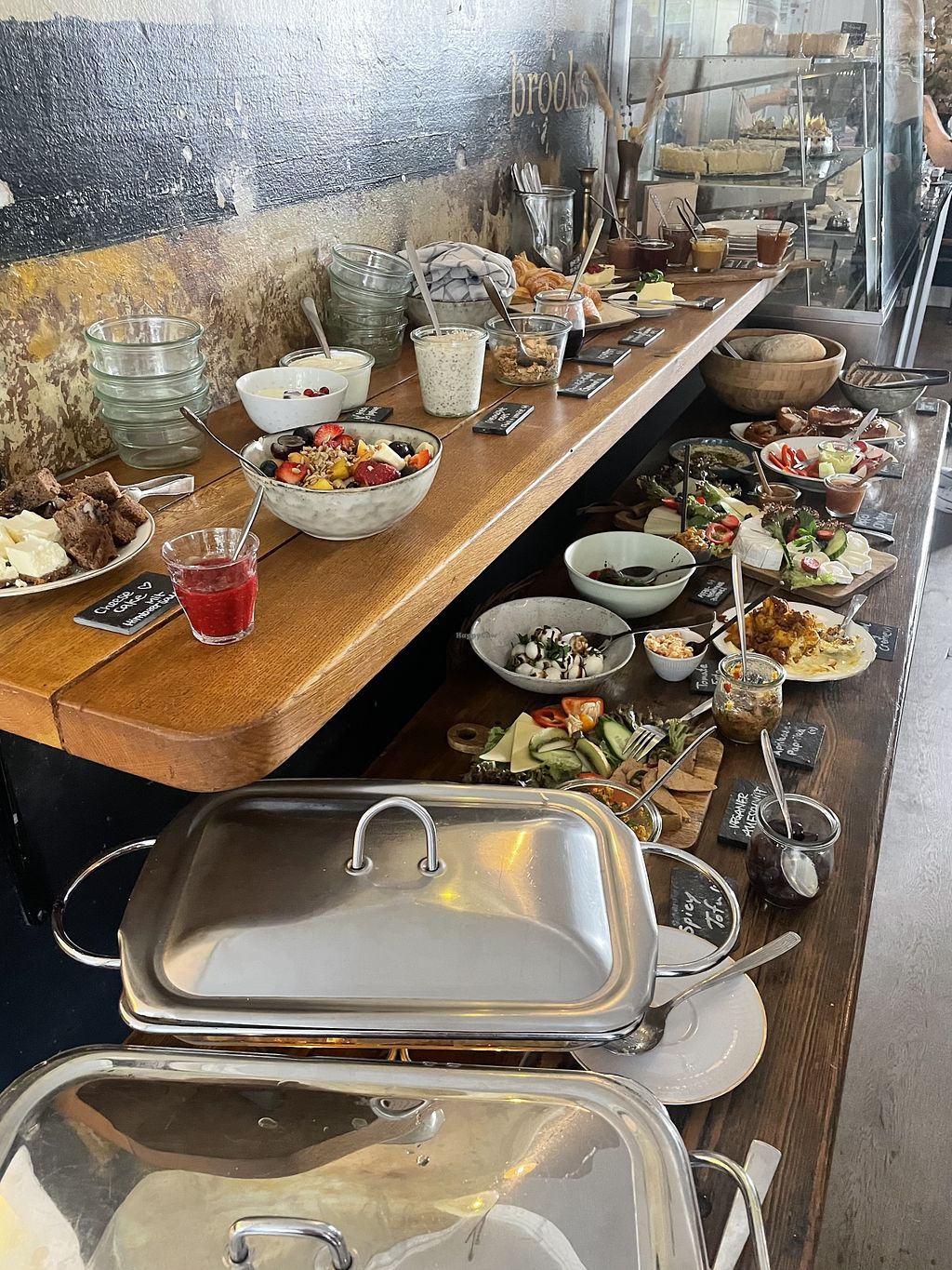 Wir sind nach dem Sport spontan bei Brooks vorbeigekommen und haben uns die Karte kurz angeschaut. Da stand, dass Sa. & So. Frühstücksbüffet ab 12:15 gibt; es war genau 12:15. Haben uns draussen hingesetzt und das schöne Wetter beim tollen Essen und Getränken genossen. Schönes Café in ruhiger Umgebung.