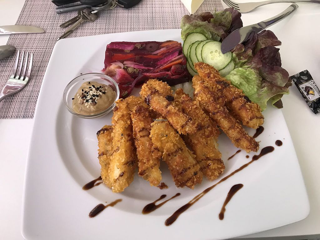 Pastinakensticks mit bunter Sülze und Auberginencreme - sehr empfehlen…