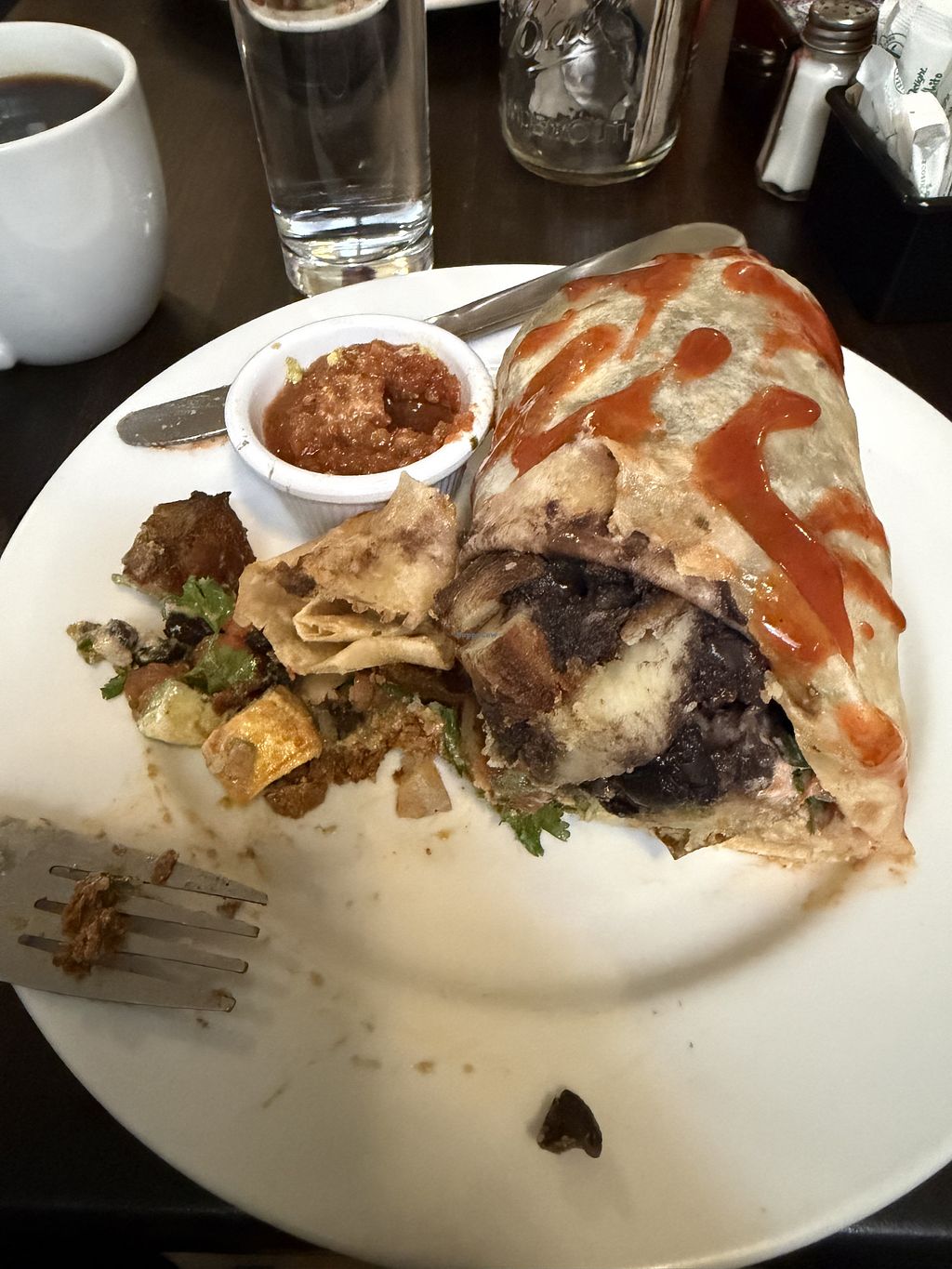 Vegan Chilaquiles corn tortilla strips, soyrizo, organic tofu, black b…