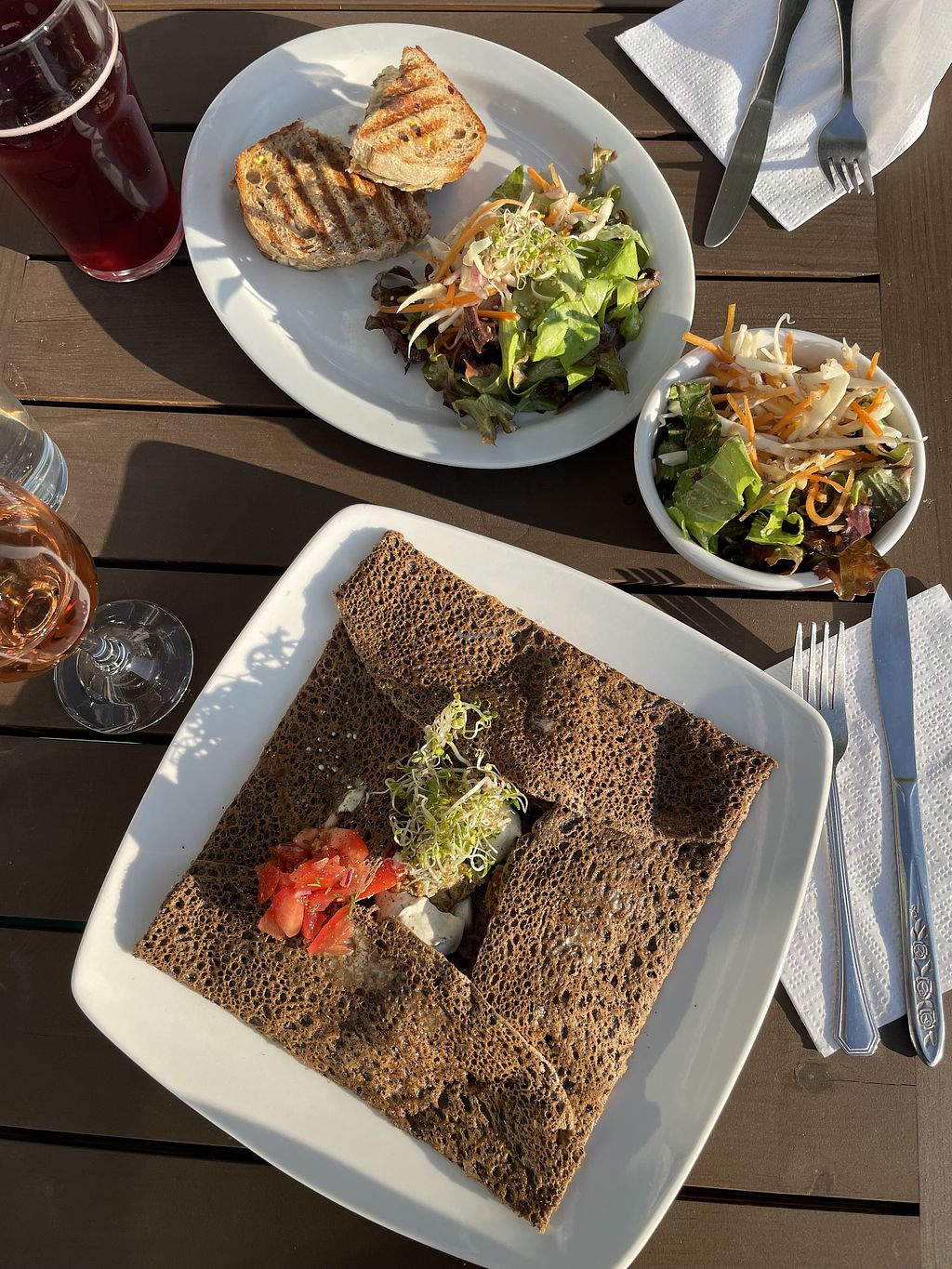 Lacto Ovo Beer/Wine French Breakfast Non-veg Serves meat, vegan options available. Creperie offering vegan sweet and savory buckwheat crepes, plant-based milk for drinks, and a vegan platter. Hours are subject to holidays - check ahead. More