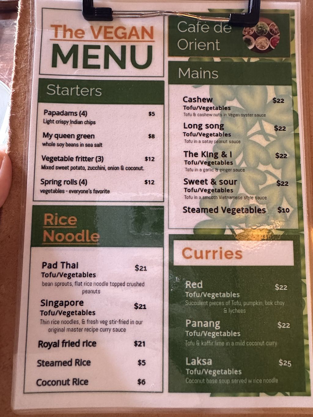 They have a separate vegan menu, certified vegan wines (just check with staff- they are very happy to show you the vegan wines), the best vege spring rolls I’ve had in a very long time,