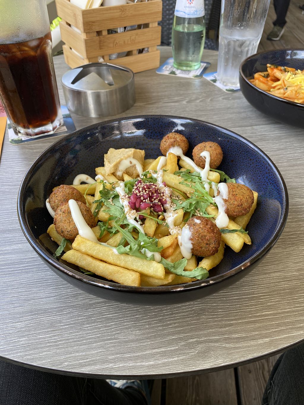 Was mit am besten gefällt ist ein Gemüseteller (Grillgemüse mit Superleckeren Kartoffeln) den man individuell zusammenstellen kann (zb mit Champignons, Falafeln..) vegane Mayo ebenfalls vorhanden. So ist es ein super leckeres und gesundes Gericht. Es gibt aber auch verschiedene andere Möglichkeiten!