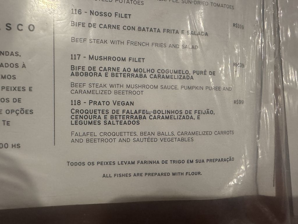 Read moreFor BBQ night I had a vegetable skewer with rice and a salad (plus some bonus boiled vegetables). With a beer the total was around R$75. Always happy to have a vegan option but it was certainly nothing special.