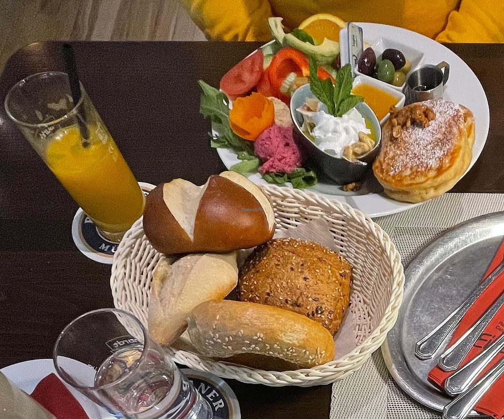 Das Frühstück ist sehr lecker. Es gibt ingesamt drei vegane Variationen. Zusätzlich gibt es noch Backwaren. Die Pancakes sind sehr fluffig. Alles ist gut gekennzeichnet.