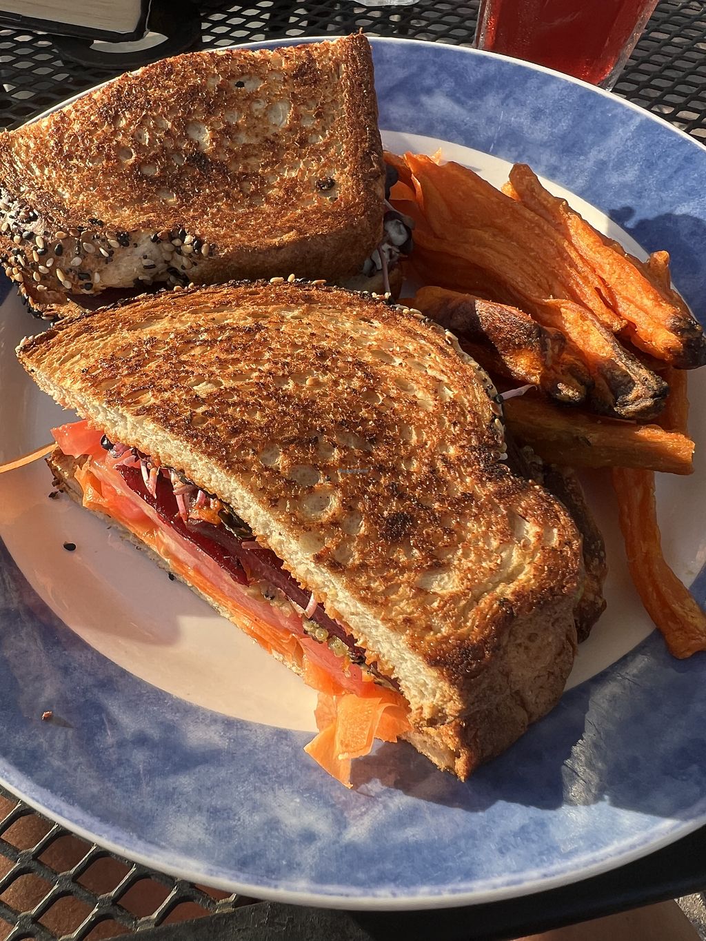 I LOVE when a restaurant gives us clarity on the menu. This place does that. I got the vegan beet Ruben and was pleasantly surprised. Very very good meal, nice atmosphere. Didn’t love the non vegan options on the menu though.