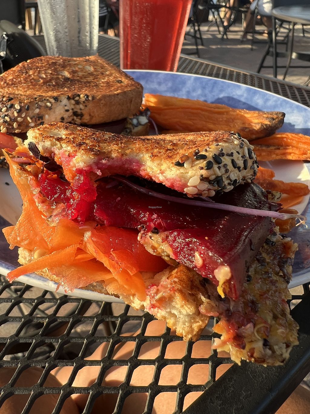 This is a wonderful gem! I ordered the club sandwich which they made vegan. It was on the menu as vegetarian and GF. I had a side of baked sweet potato fries. This place has kumbucha on tap. I had the hibiscus something…..it was so smooth. I had a coconut berry moose for dessert and I forgot to take a picture. It was yummy. Melissa was my server. Very nice girl. I ate outside. It was noisy with traffic sounds but i wanted to eat out side.