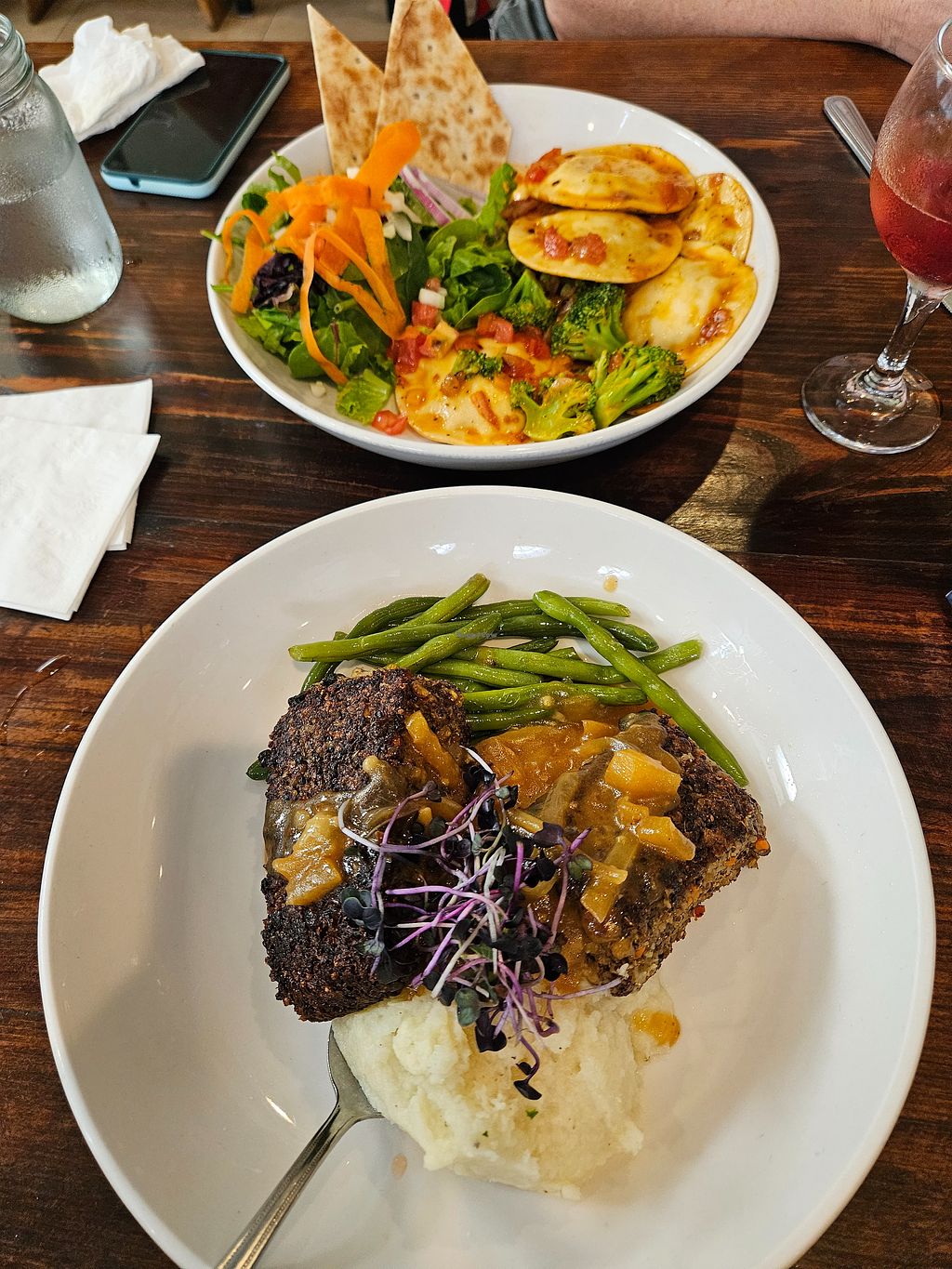 Vacationing nearby and thanks to happycow, we were able to find this place. They have more vegan options than you would expect. Got the cafe sampler, meat loaf, and the special which was a ravioli dish. Also, the wine they used in the raspberry sangria was vegan too! The items we ordered were top-notch. Cafe Evergreen lived up to its reviews for sure. Highly recommend.