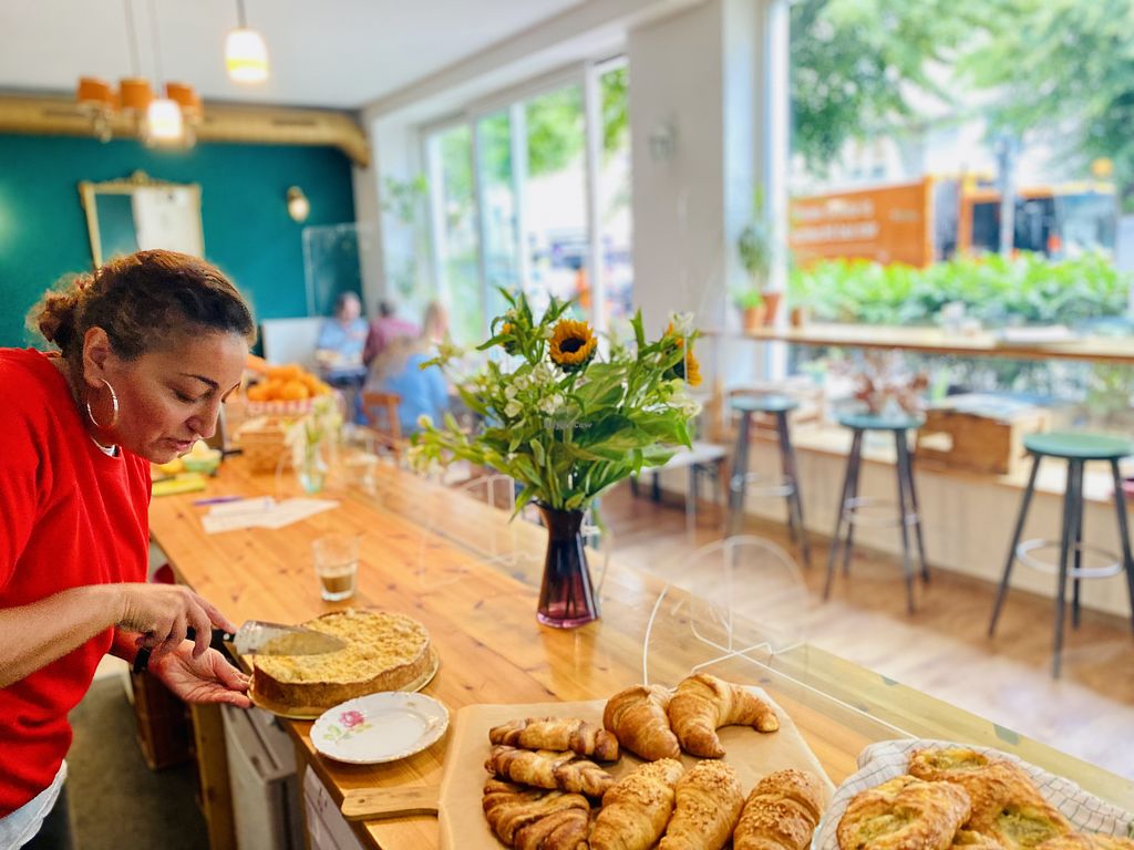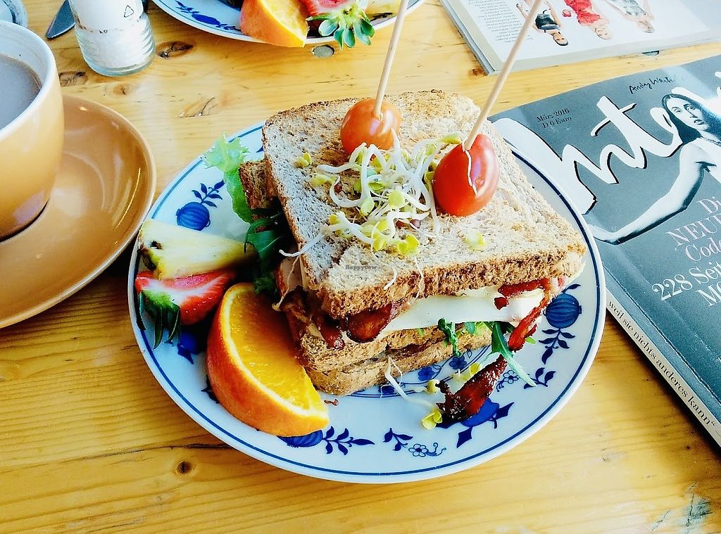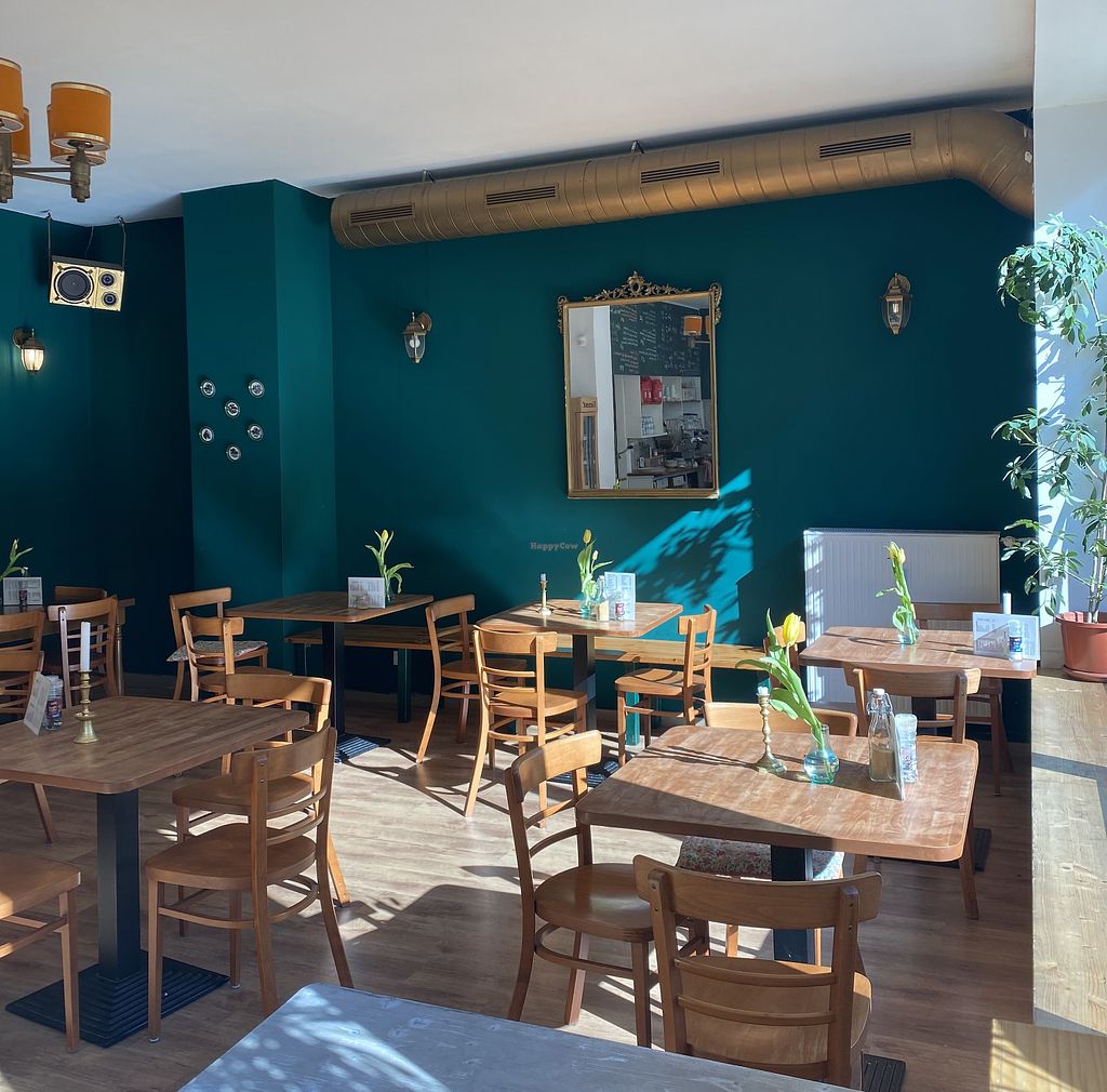 Vegetarian café with labeled vegan options. Has plant milk for hot beverages and a changing selection of cakes and sandwiches. Vegan breakfast choices include a set vegan breakfast, Bircher muesli, and avocado sandwich. Open Mon 10:00-15:00, Thu-Fri 10:00-15:00, Sat-Sun 09:30-16:00.