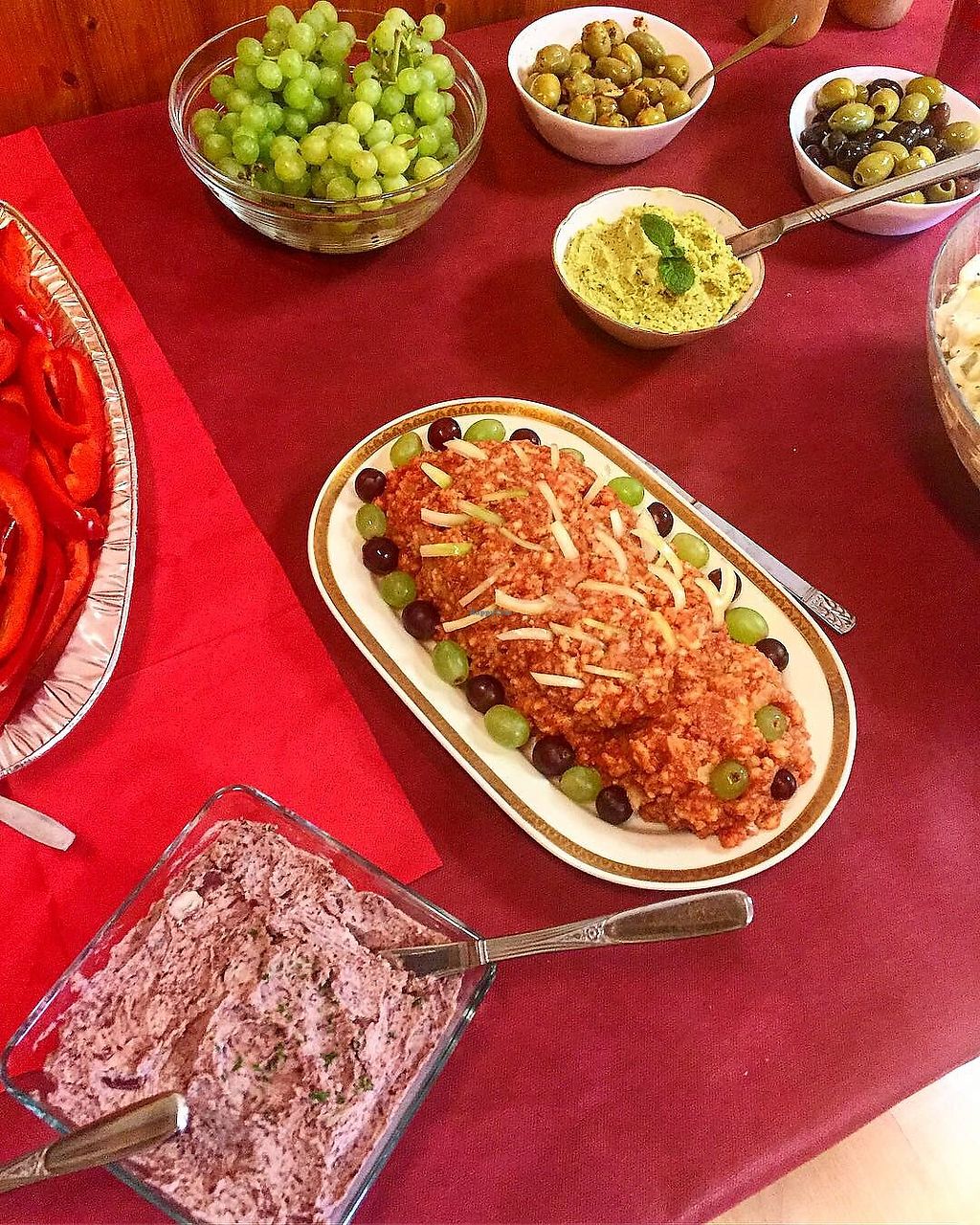 "Glücksschüssel": Spaghetti in Tomatensauce, Hummus mit Baguette, Sala…