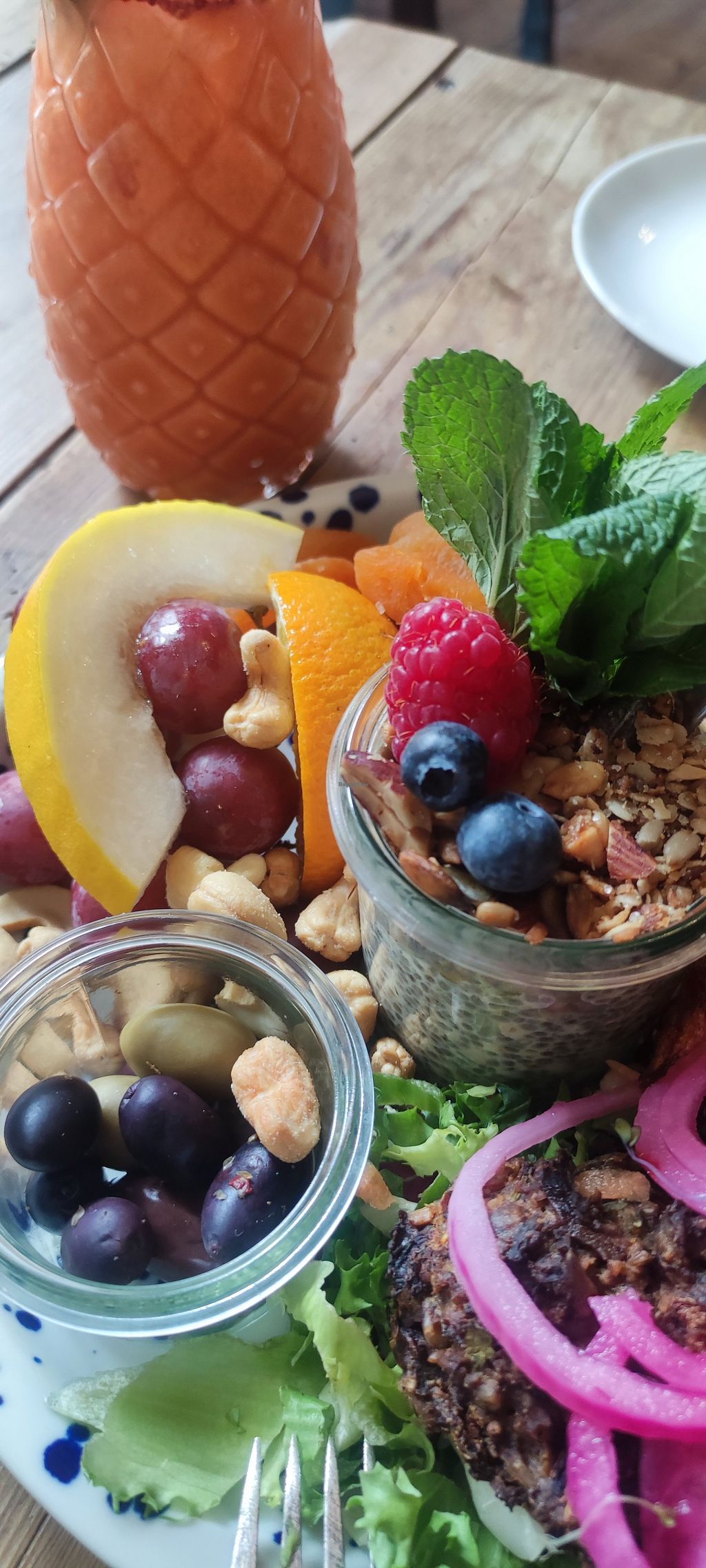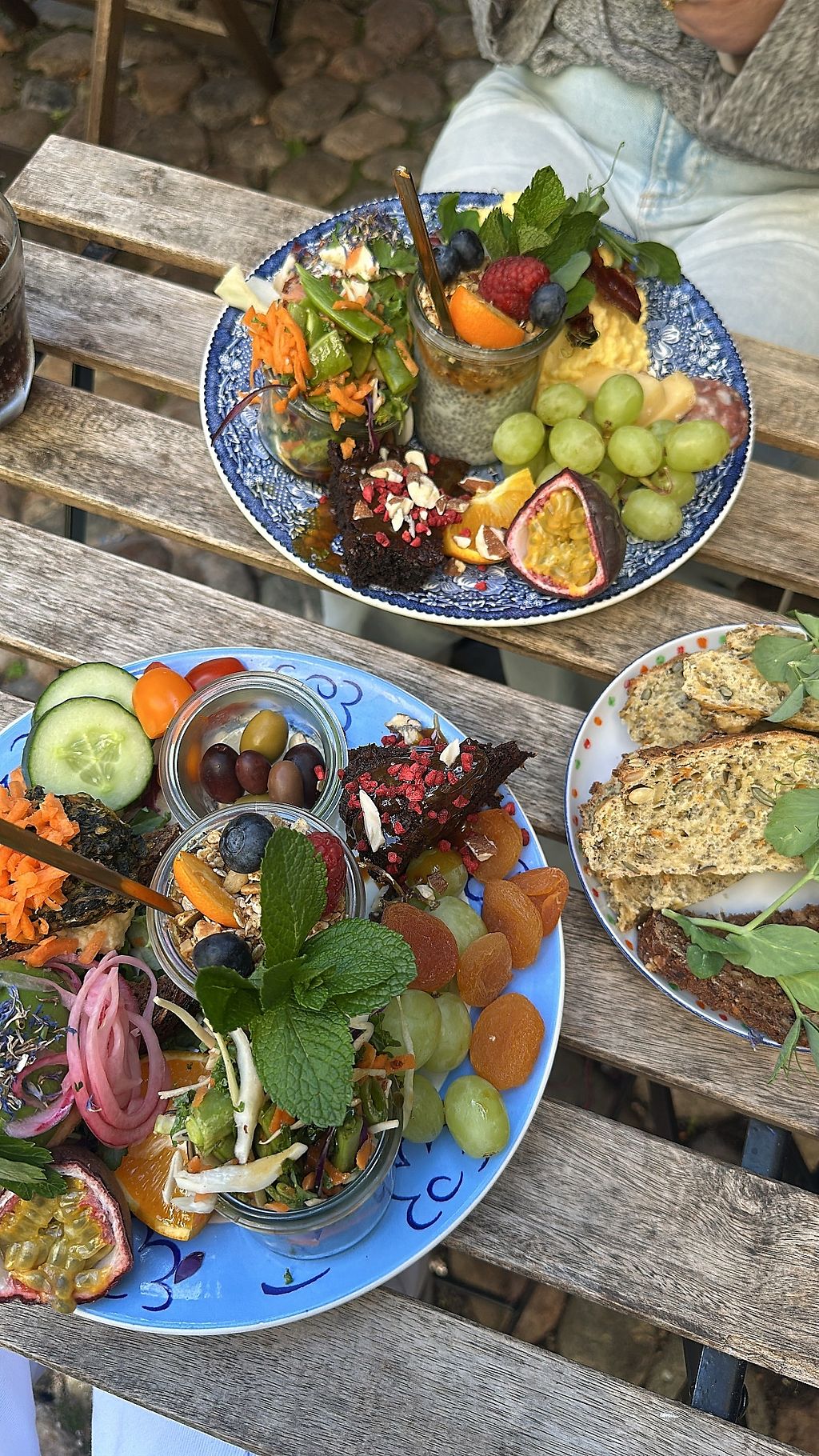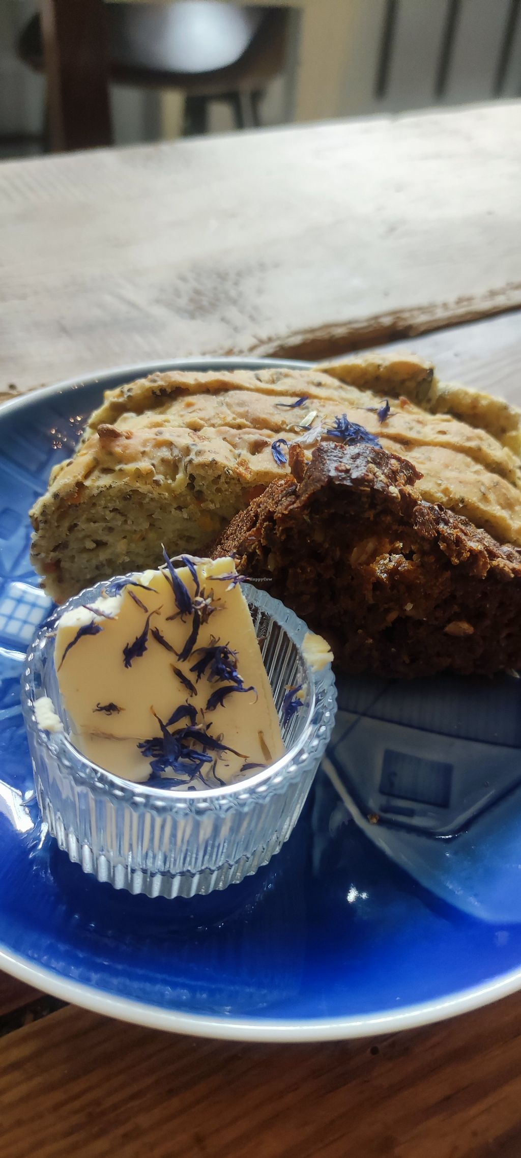 The beautiful brunch plate which come with fresh baked bread on the si…