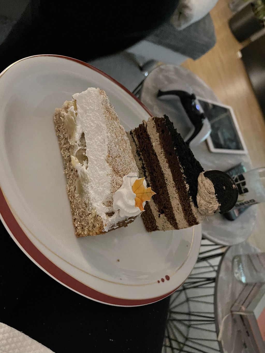 Had a nougat cake and berry cake. And a coffee and forrest fruit tea.