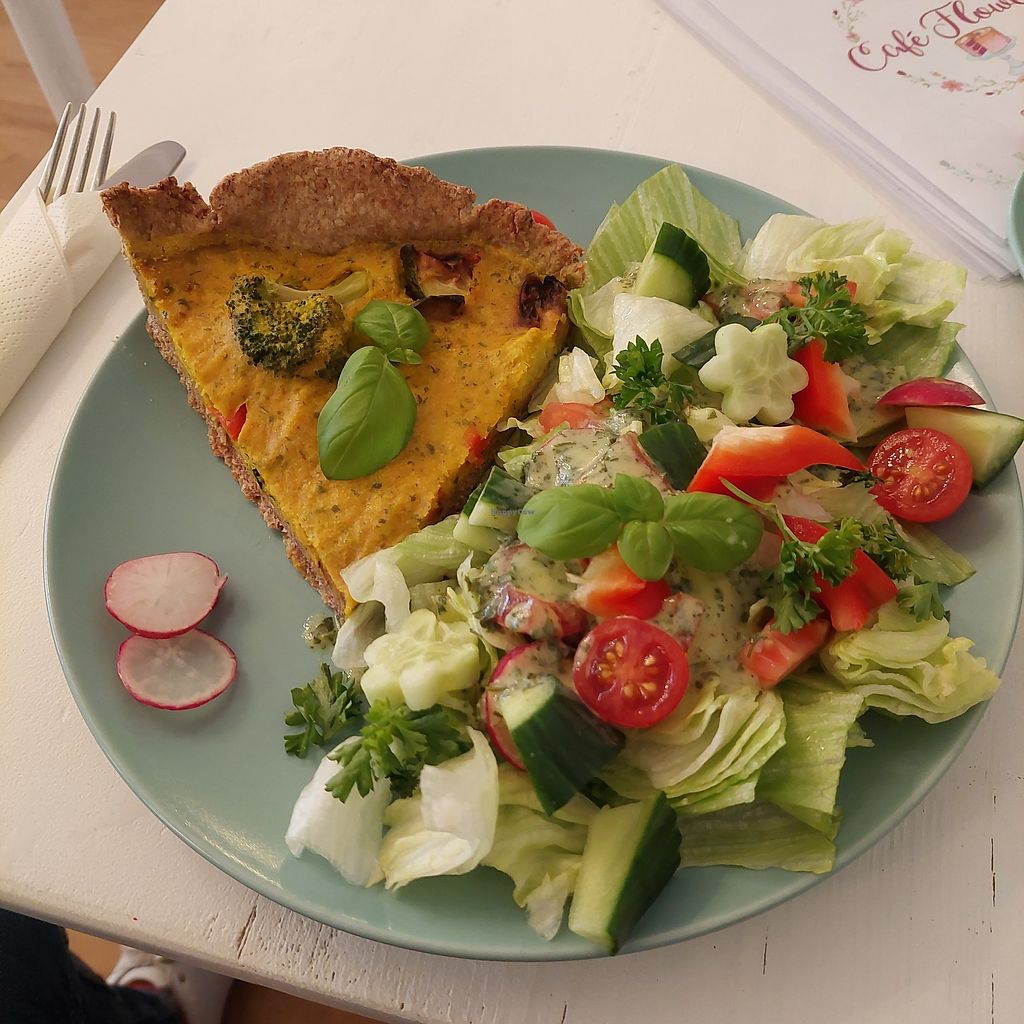 Sehr angenehme Atmosphäre und freundlicher Empfang. Kann bestätigen, dass es um viertel nach zwei noch Mittagessen gibt (mit einem Blick auf die Uhr), die Quiche ist auch wirklich lecker. Allerdings mit dem kleinen Stück und dem Beilagensalat aus 90% Eisberg nicht wirklich sättigend und für ~12€ auch leicht überteuert, Inflation hin oder her. Mein Eindruck ist, dass das eigentliche Highlight hier die Kuchen und Torten sind, für die ich leider keine Zeit hatte. Die sehen aber so hervorragend aus, dass ich beim nächsten Besuch ziemlich sicher den fünften Stern zücken werde.