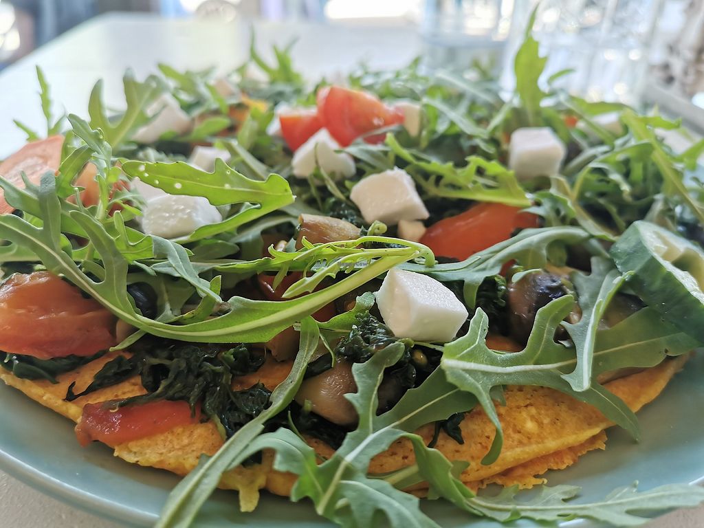 Herzhafter Pfannkuchen mit Champignons und Salat