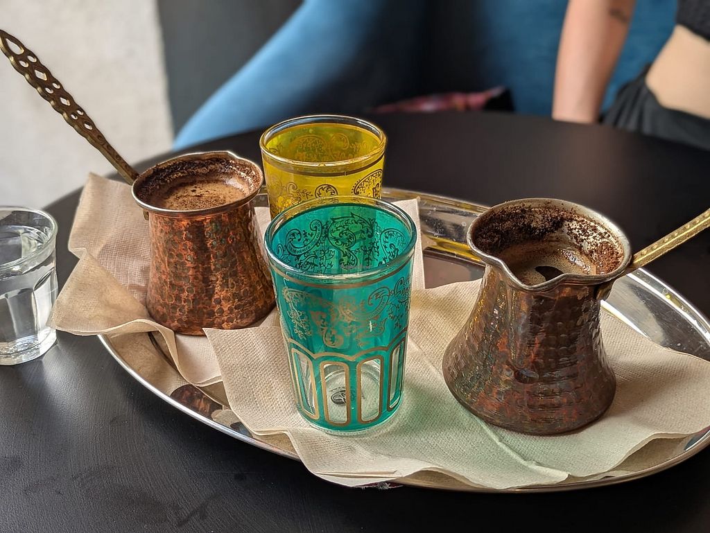 A huge selection of coffee from all over the world, with many exotic flavours. The choice is actually quite overwhelming! No menu in English, so you need to use a translate app. There are symbols for plant based coffee and it tells you whether milk is used in the recipe. It's very laid-back, so we took our time to choose our coffee before ordering. We went for the Arab style coffee - orange and Bedouin.. would definitely recommend them both but especially the orange one! Very strong! 😅 Beautifully presented and prepared using traditional methods and equipment. Will definitely be back to try different coffees soon!