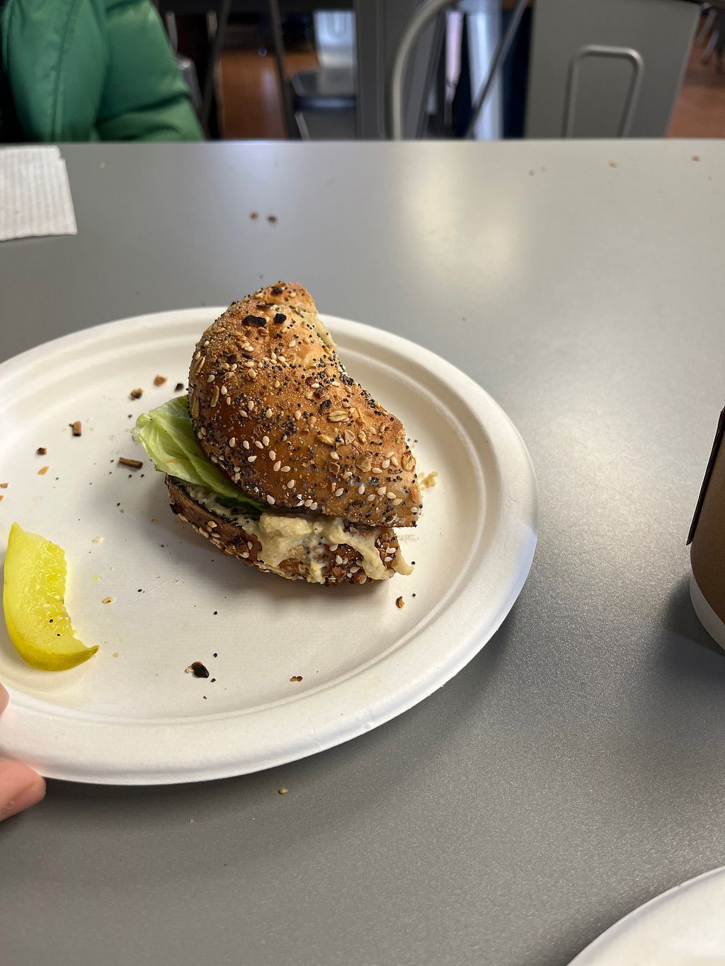 The bagels are really good, and fresh made onsite. The hummus and veggies on the bagel were good. The staff was helpful at confirming vegan options. There’s some basic seating. It’s got a very family-owned local business vibe that is delightful.