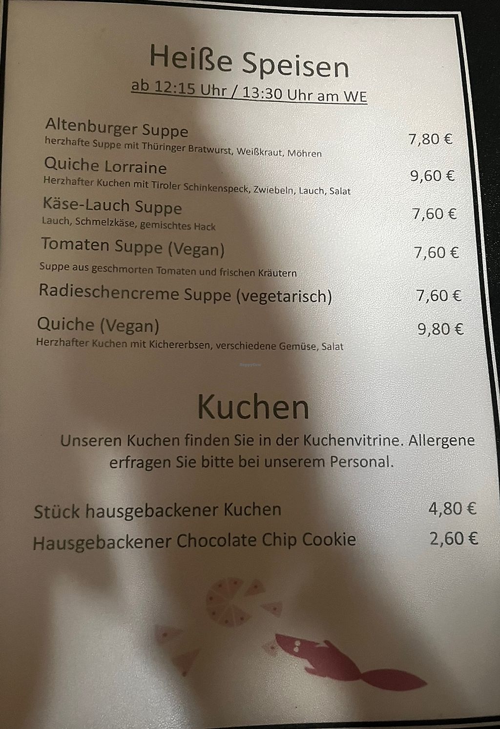 Vegane Optionen sind vorhanden, auch bspw. heiße Schokolade
