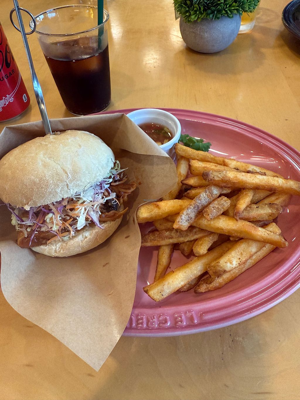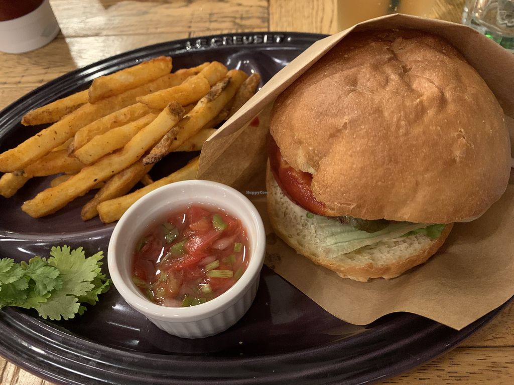 Props to this place for having lots of plant-based options, savory and sweet. I really liked my brown rice burger, with a housemade patty. The fries were really good too, although I question why they choose to serve them with watery salsa instead of ketchup. Ambience was nice too.