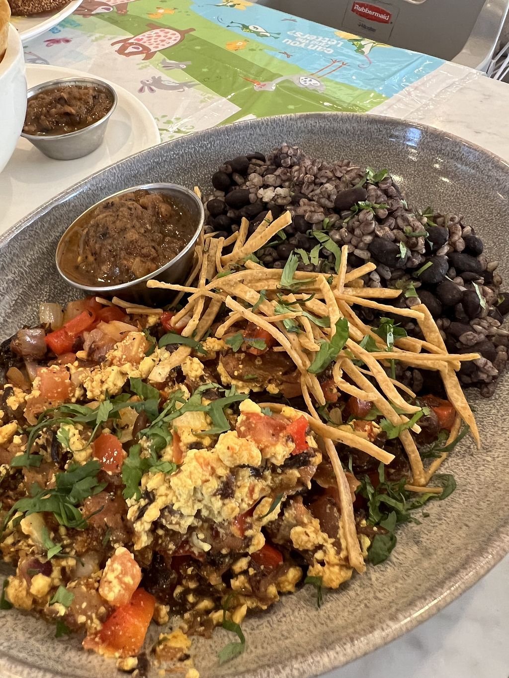 My first time to this location, super cute & friendly staff. Manager was great & very helpful with navigating the menu around my moms nut allergy. She ended up with the tofu scramble & breakfast potatoes, came with toast & a house made roasted strawberry jam which was delicious. My fiancé had the “chicken” & waffles, he is more of a junk food vegan & he loved it. We all did immunity shots as well. Great brunch spot for vegans & non vegans.