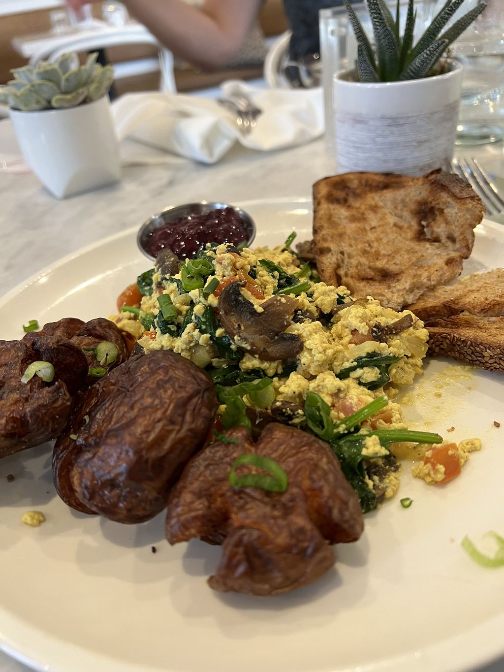 I got the I am Hearty and it was a really delicious tofu scramble! I also really liked the blueberry jam as well!