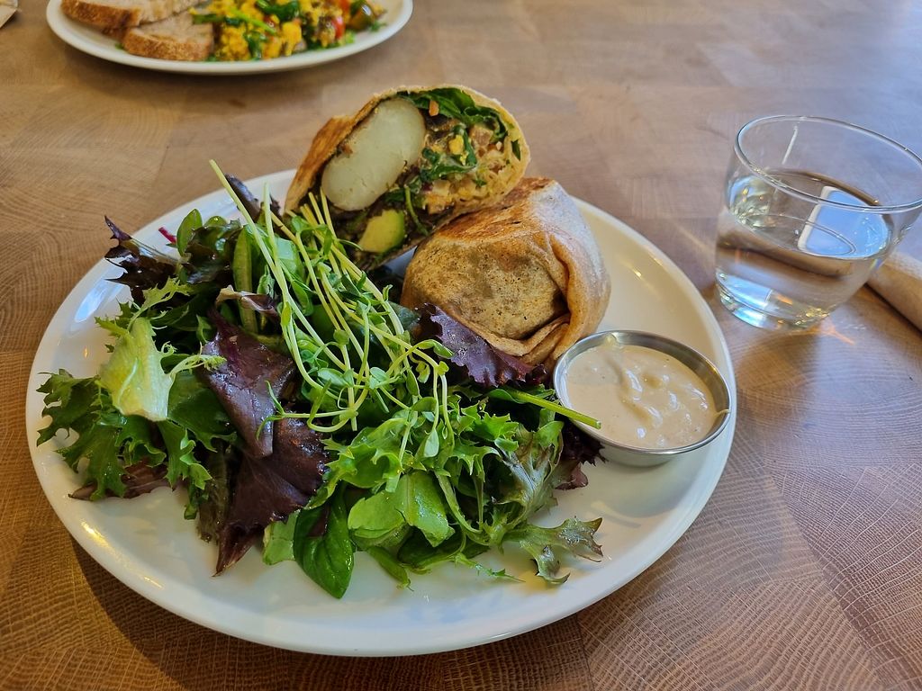 Mushroom bacon and Mission Burrito with mushroom carnitas at Cafe Grat…