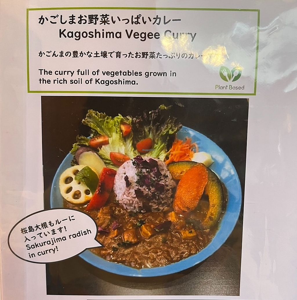 We had an overwhelmingly delicious vegan curry made with plenty of Kagoshima vegetables. We were also very satisfied to be able to try Sakurajima Daikon, the largest daikon in the world, which is registered in the Guinness Book of World Records. The restaurant was conveniently located near Kagoshima Chuo Station and had a comfortable atmosphere. We will definitely come back when we come to Kagoshima.