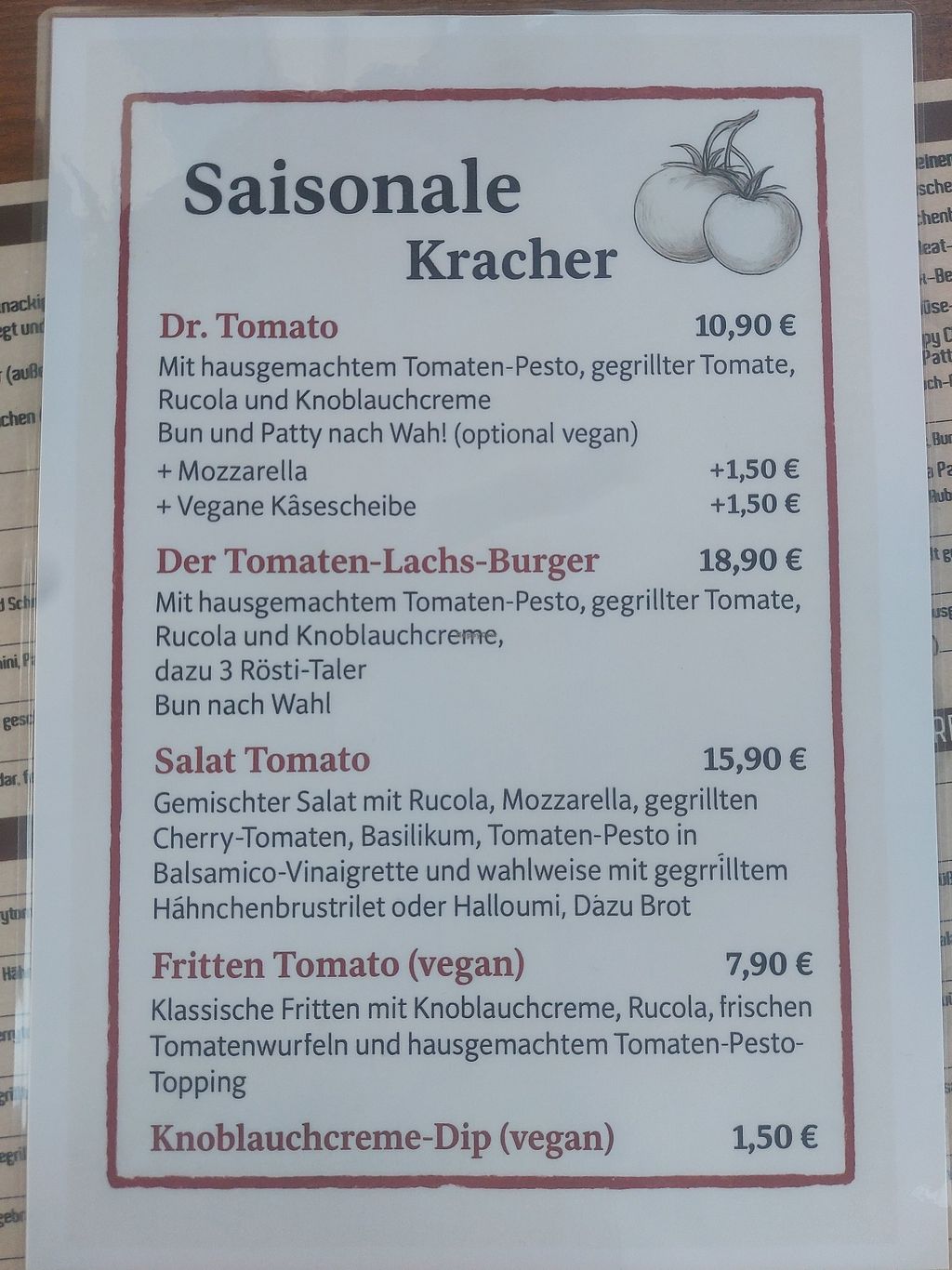 Read morePros: 3 vegane burgerpatties, Viele vegane dips, Nettes Personal