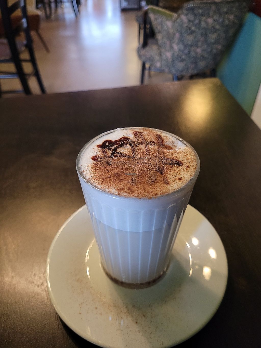 Several beverages, cake and warm dishes available. A lot of is it bio wich explains the sometimes elevated prices. I'll recommend it to everyone.