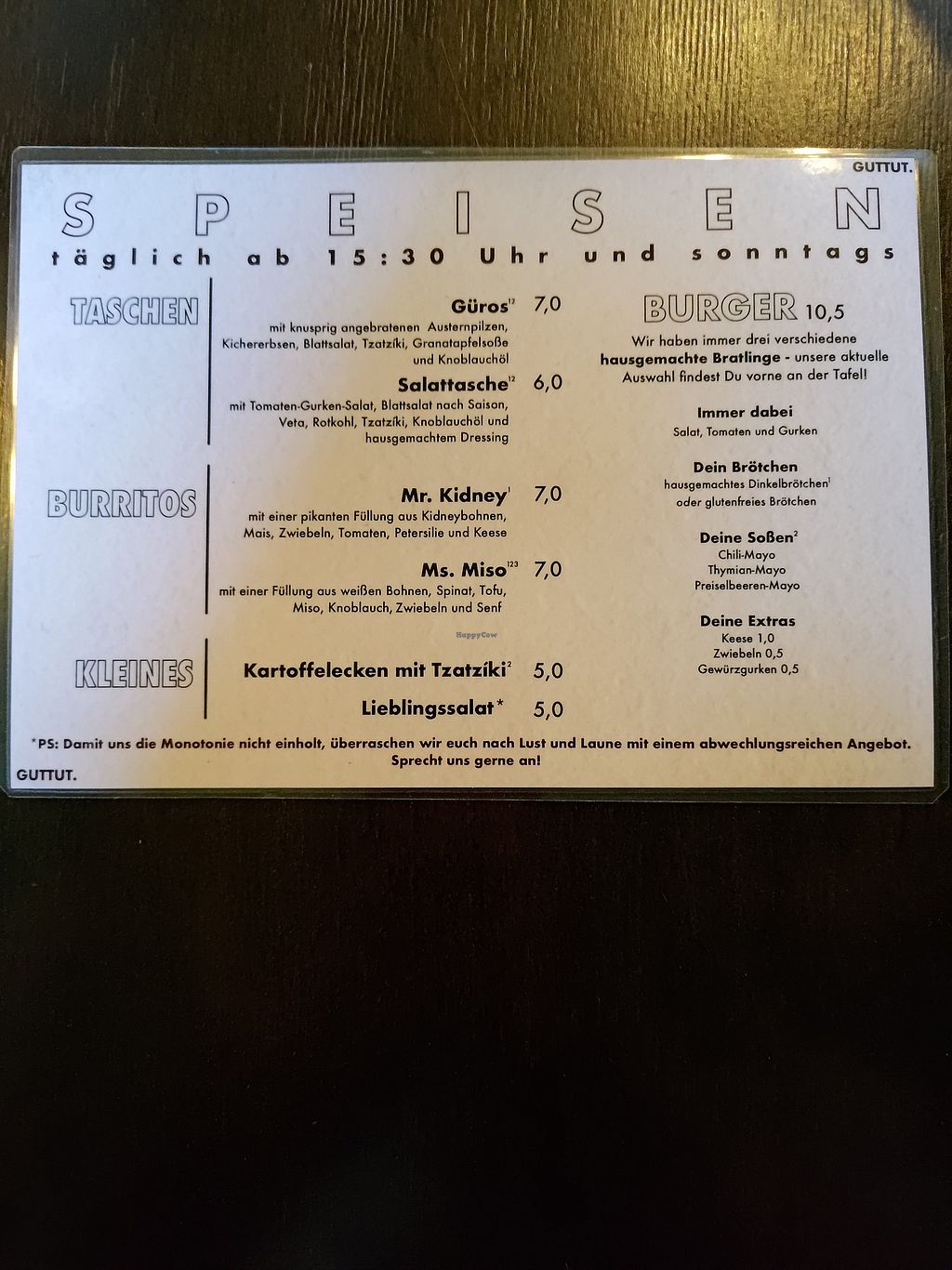 Das Guttut ist seit Jahren die erste Anlaufstelle für veganes Essen in Dortmund. Als älteste rein vegane Gastronomie in Dortmund mit guten Burgern, frischem Kuchen und saisonalen, gesunden Wochengerichten ist das Guttut absolut unterstützenswert. Es gibt immer auch glutenfreie und zuckerfreie Optionen. Zusätzlich werden eine entspannte Atmosphäre und Preisgestaltung geboten.