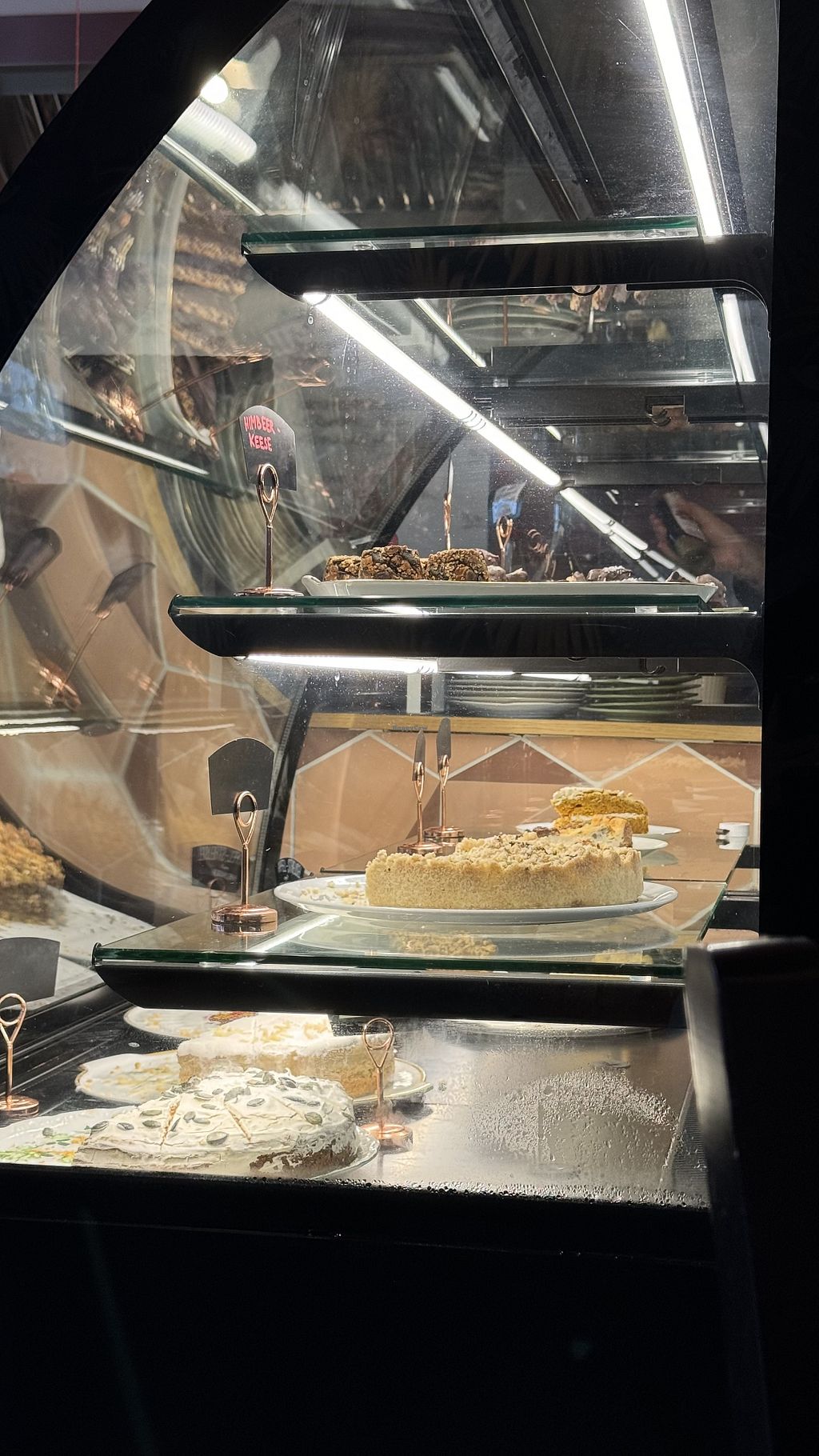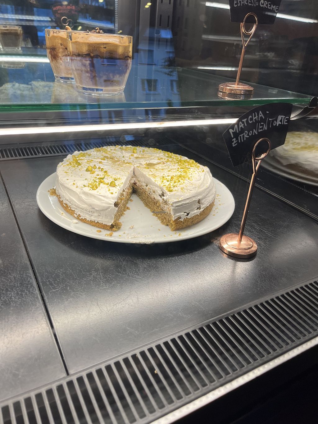 They have a pretty big variety of vegan cakes and other baked goods like Nussecken. I went there pretty late around 7pm and you could still get a dozen different cakes. I tried their poppyseed cake with lemon frosting which was quite tasty. The matcha latte I had was incredibly smooth and tasty. I'm looking forward to going there again😄Also, I love how many plants they have inside.