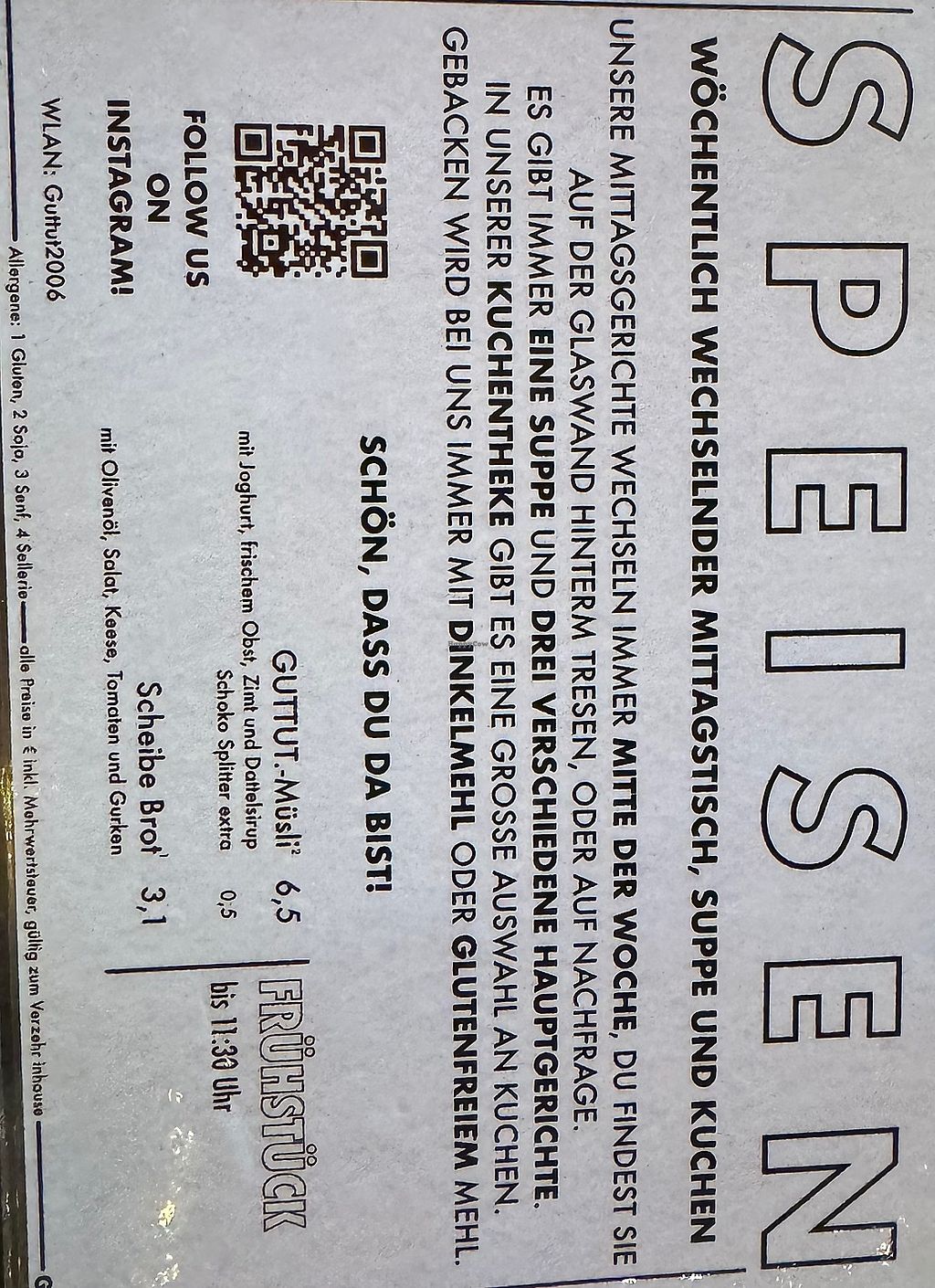 Hab hier einen superleckeren Pflaumen-Apfel-Streusel-Kuchen gegessen und einer Schorle getrunken. Sehr zu empfehlen!