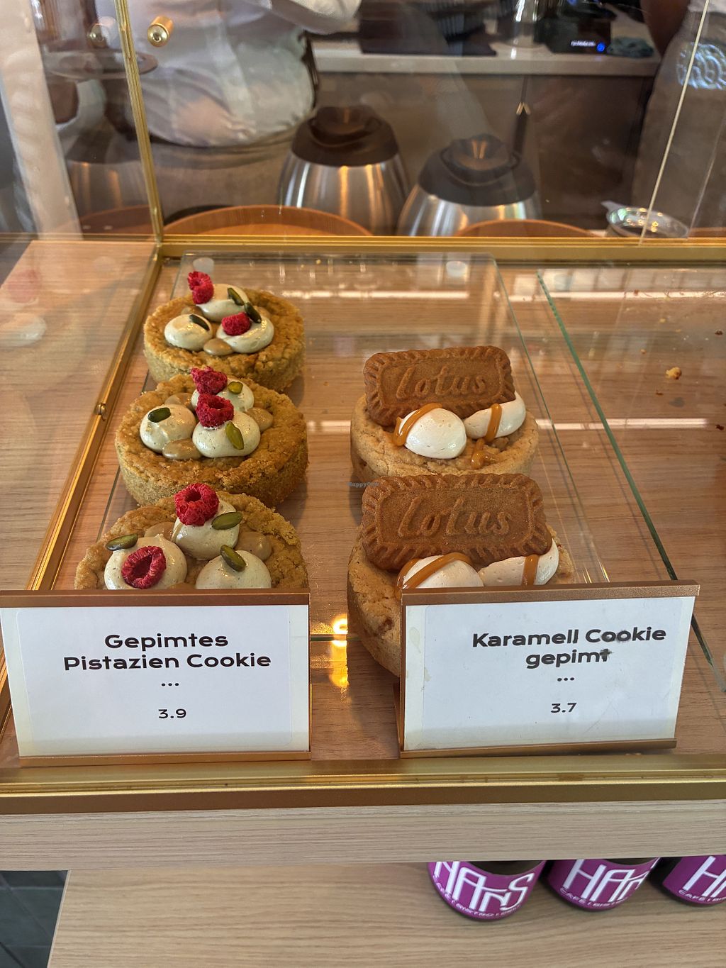 Ich hatte eine sehr leckere Pflaumentarte. Dazu Pfefferminztee. Sie haben auch Hafermilch. Pulver für Chai Latte leider nicht vegan. Vegane Auswahl könnte noch bisschen größer sein, aber 4 Sterne sind sehr verdient.