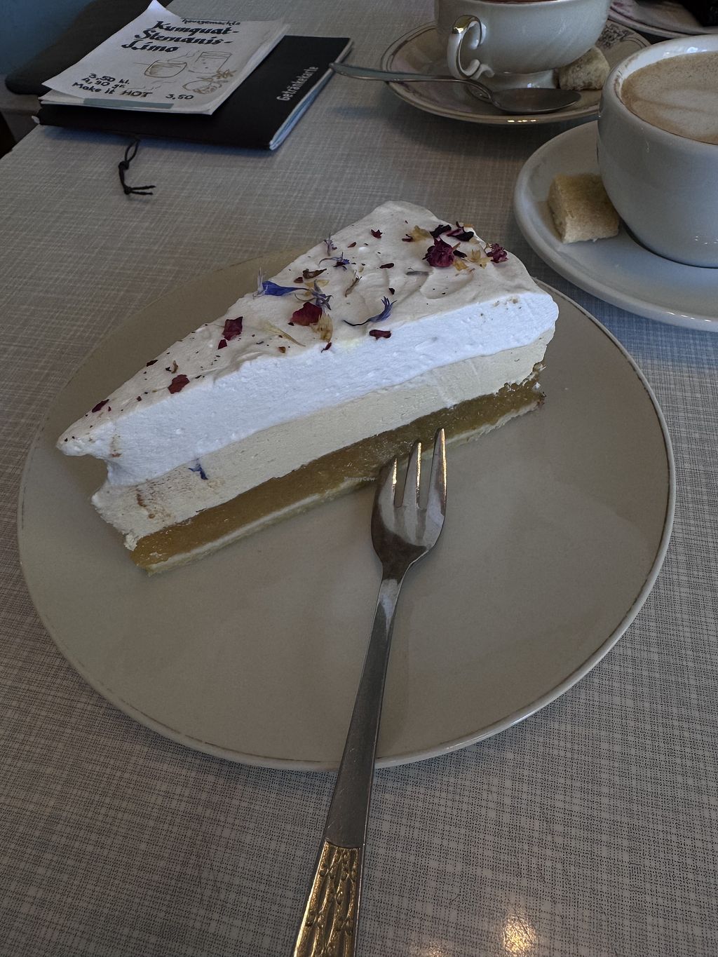 Prices are now very high. The cake was very good, but for 4,50€ for a small piece of cake, I will bake at home. Sorry!