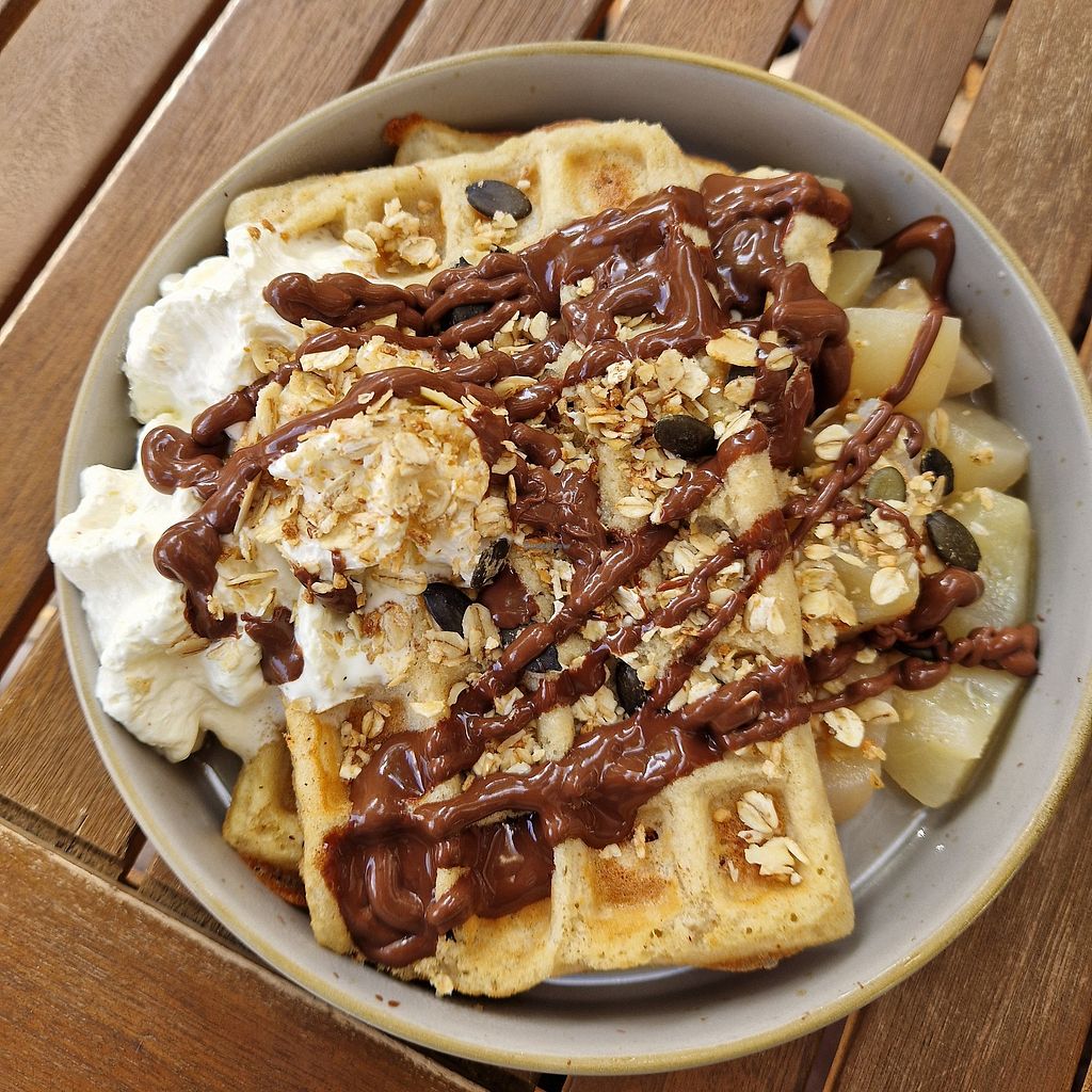 Scrambled tofu and hummus on sourdough with balsamic dressing