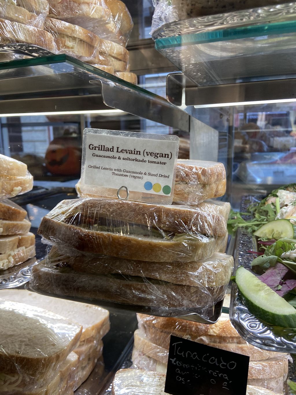 it's a really cute cafe. the vegan options are marked with a green dot on the label.