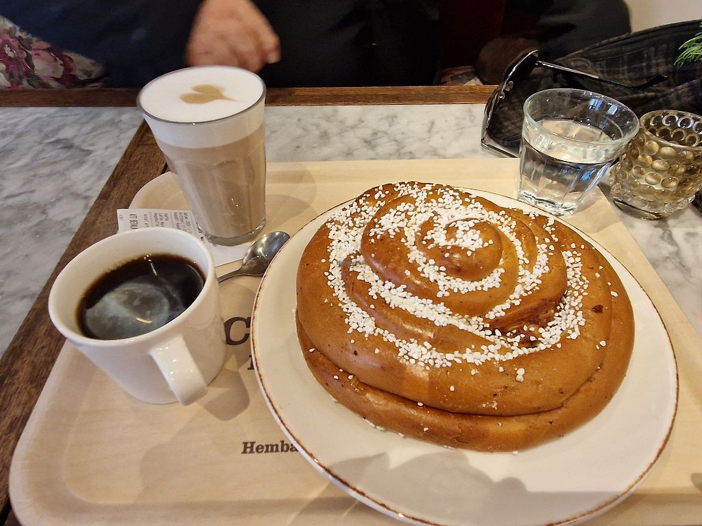 Super cosy cafe with lots of baked goods. The vegan options are clearly marked and they were some good options😄I went for the famous hagabullen and it was tasty. Needless so say it’s a lot for one person but it’s great for take away what’s left!