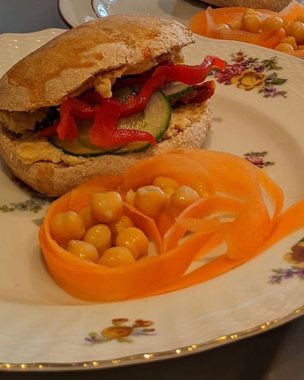 Hummus sandwich with sun-dried tomatoes and fresh vegetables