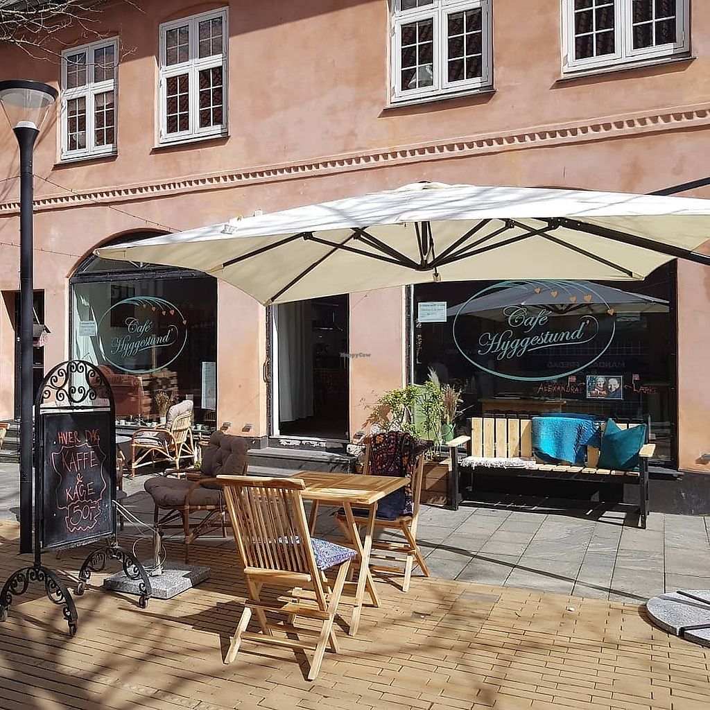 The café from the outside, showing the outdoors seating area