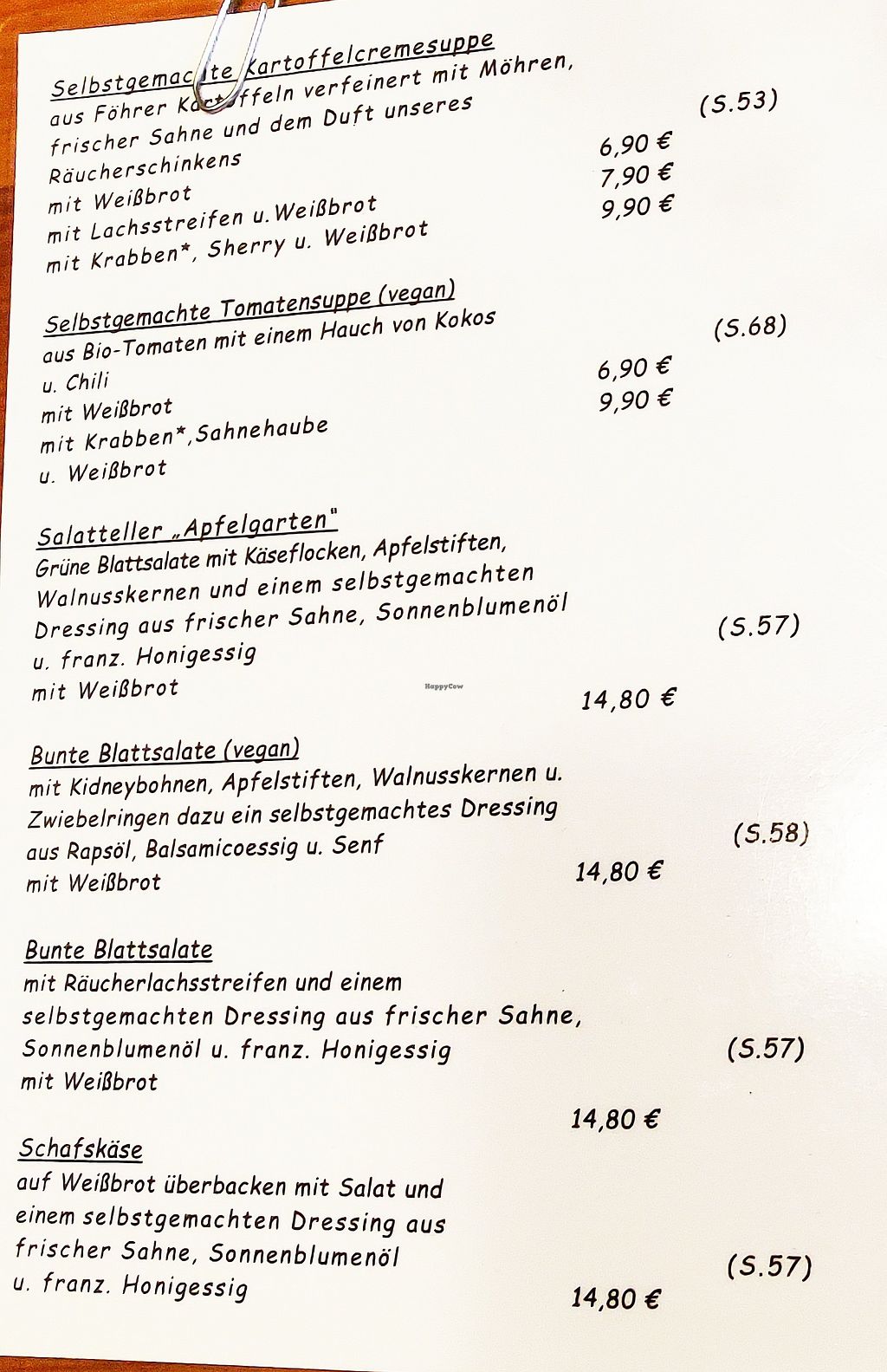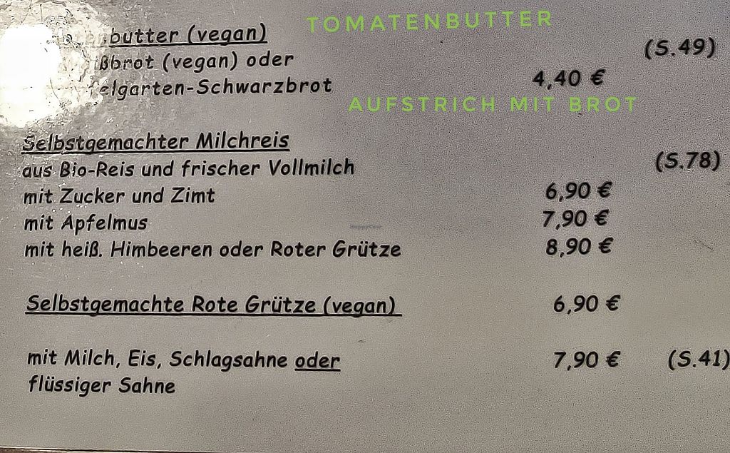 Teil der Speisekarte
