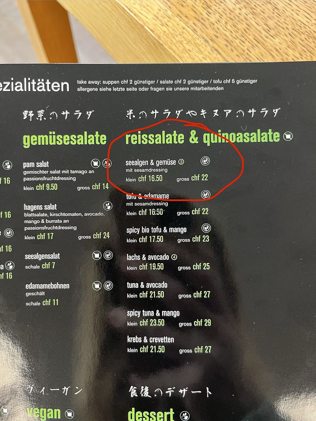 Honestly, we just came here because its conveniently located, the sign advertised vegan options and we were allowed to bring our dogs in. I didn’t expect great food but it was actually really good. I had the Reissalat with Seealgen & Gemüse.