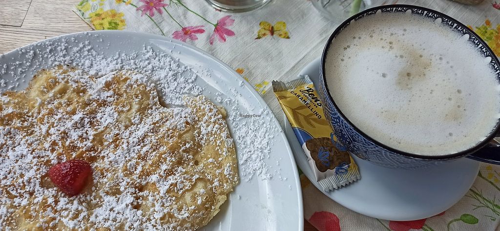 Read morePros: Ausblick , Ambiente , Vegane Waffeln und Kaffee mit Hafermilch