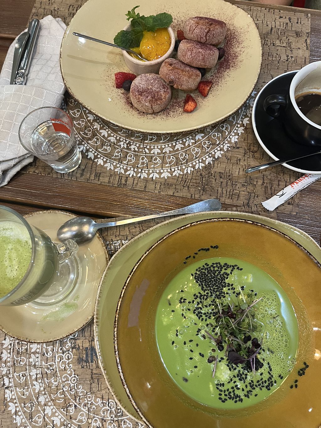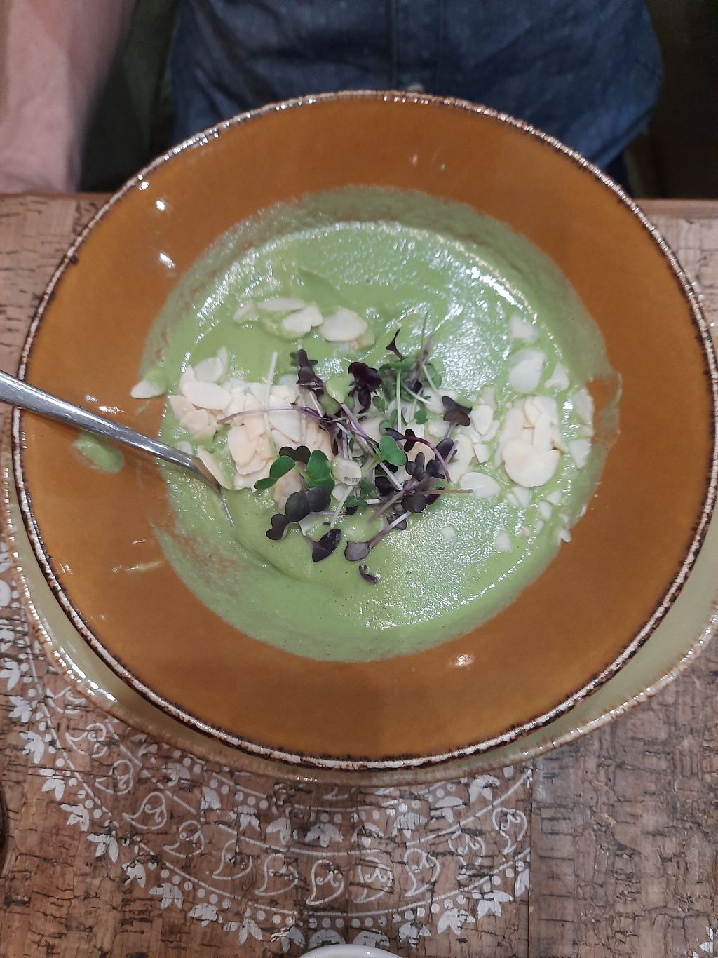 Salad with grilled veggies and salad with avocado, bamboo and pecans.