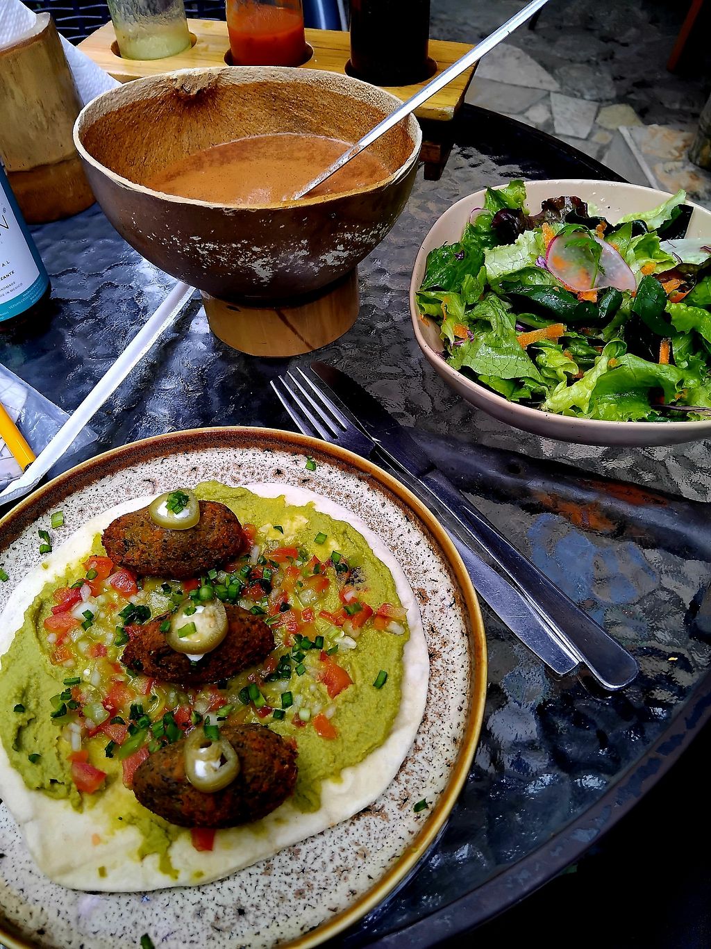 The falafel tacos was really tasty so was the side house salad. The best for me was the local drink of cacao with corn..a really nice surprise