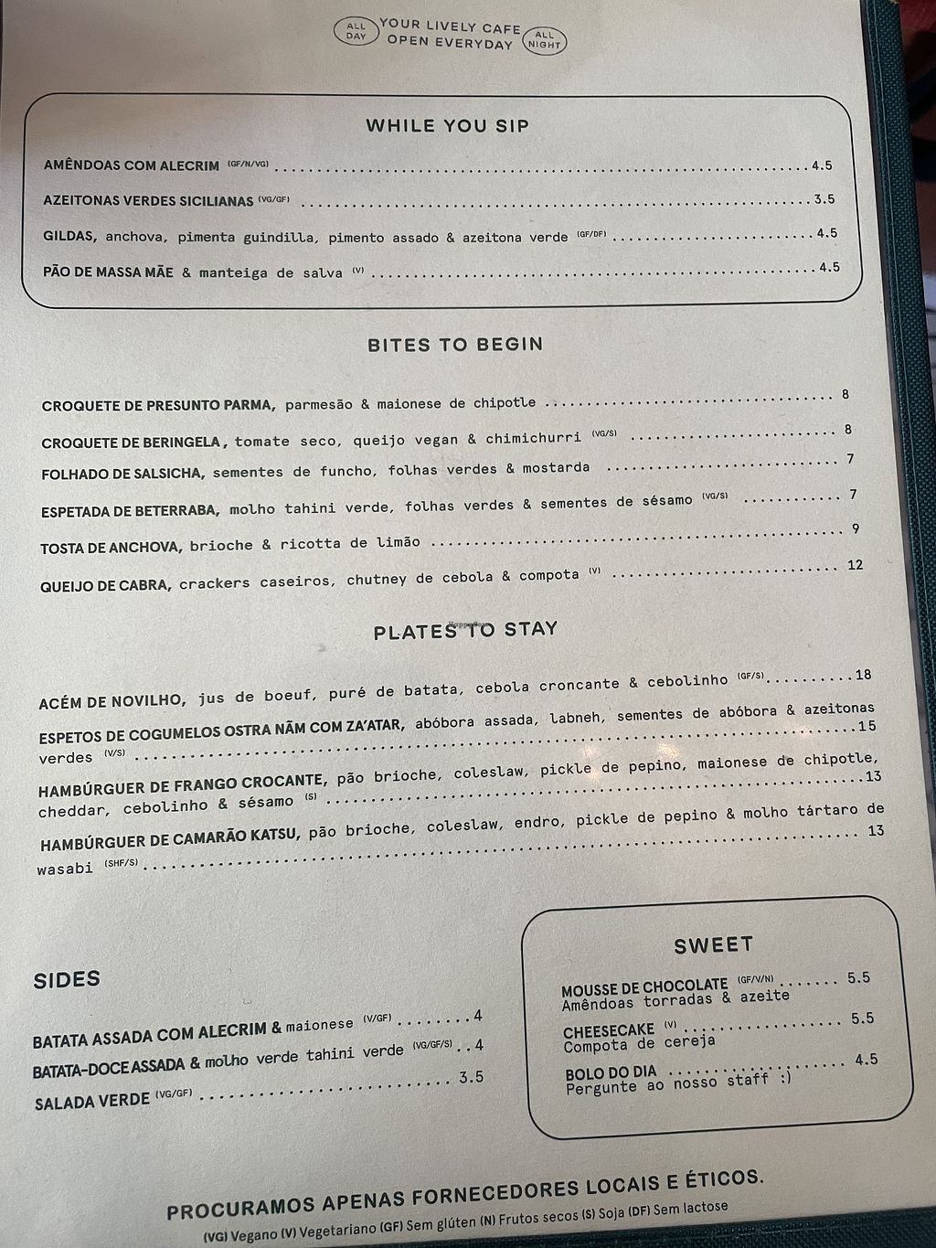 Menu - afternoon/eveningg