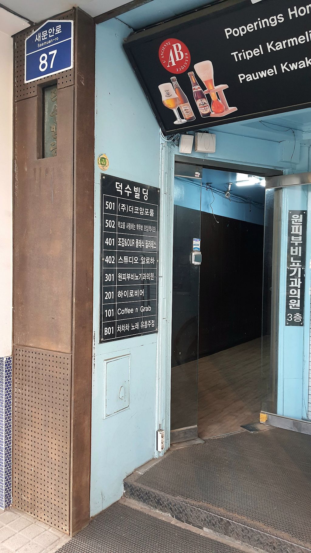 exterior of location - entrance downstairs, walk up to 4th floor